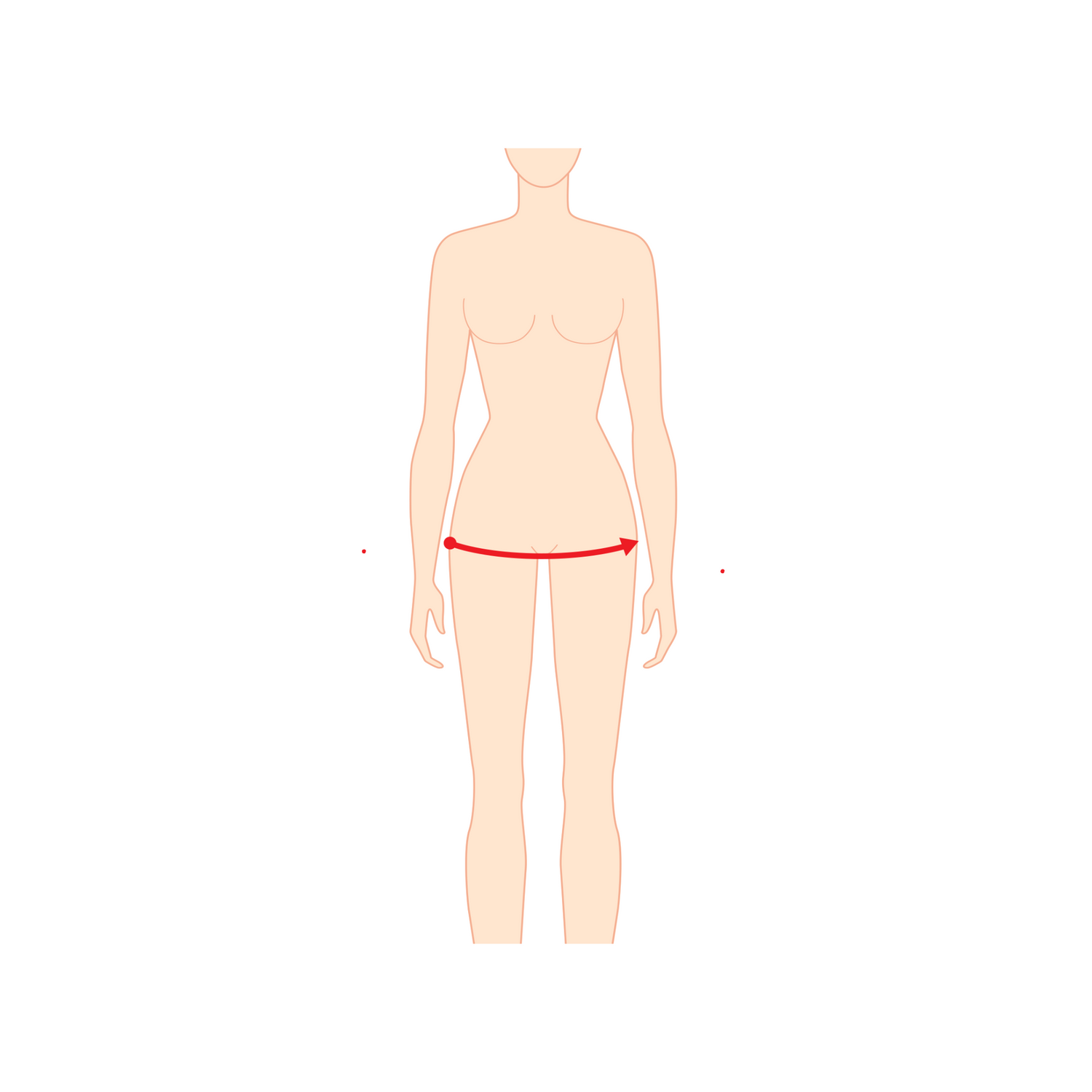 Your hip measurement can be a little tricky to get right as it is probably lower than you think. This measurement is actually across the widest point of your bottom. To make this as accurate as possible it is a good idea to take this measurement stood up and sat down and make sure your feet are straight below your hips and not spread apart.