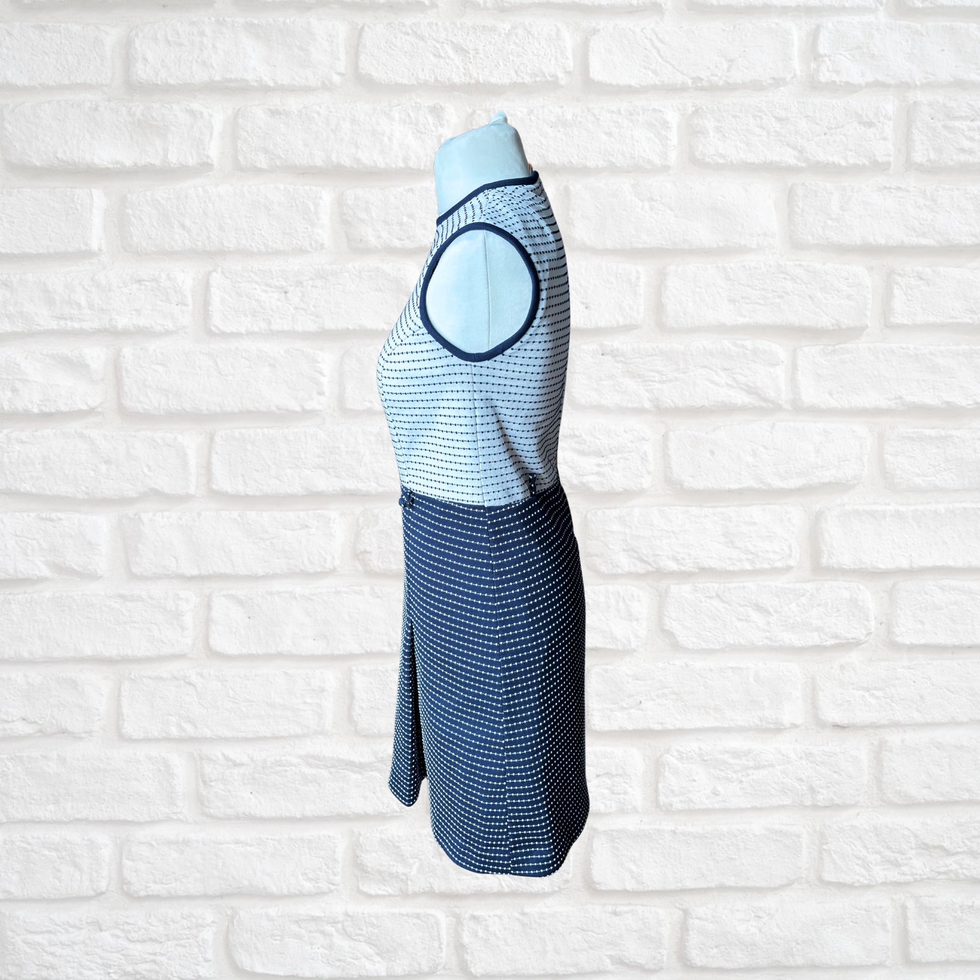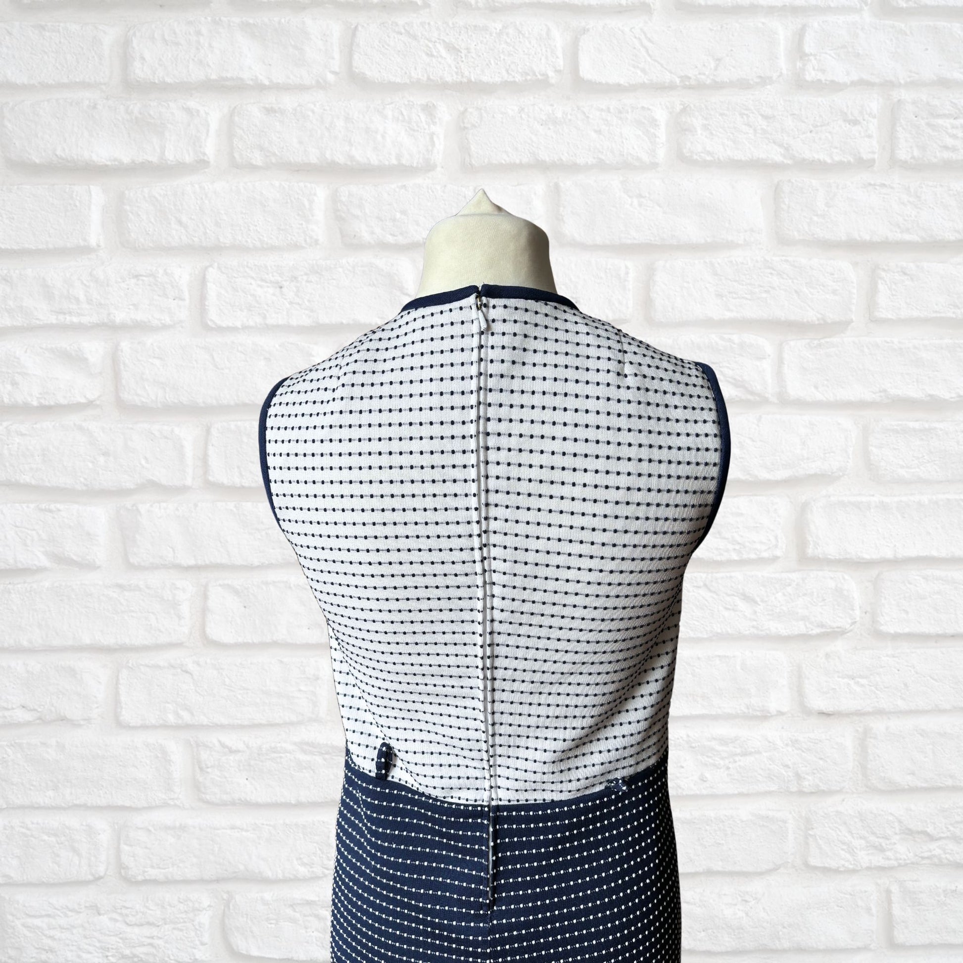 1960s Mod Style Navy Blue & White Sleeveless Vintage Scooter Dress. Approx UK size 10-12
