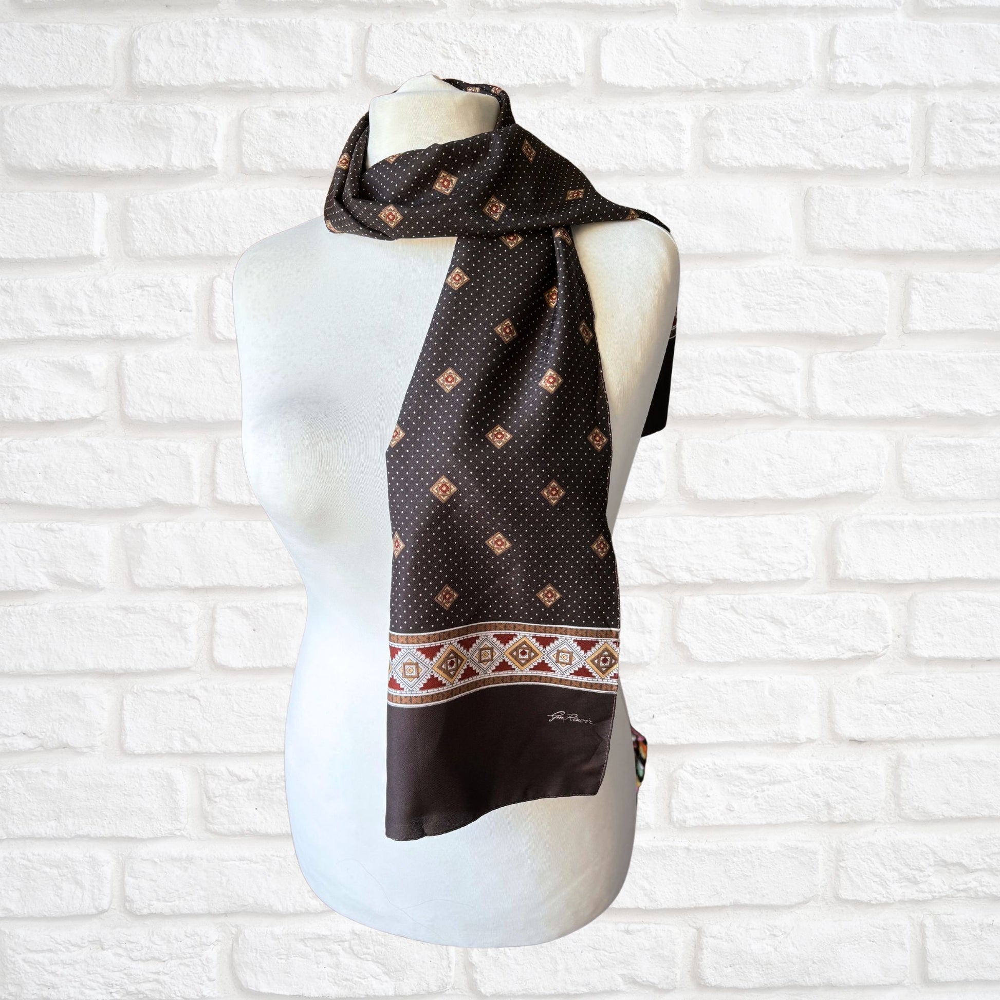1970s brown and white polka dot / geometric print Gim Renoir scarf. Great gift idea