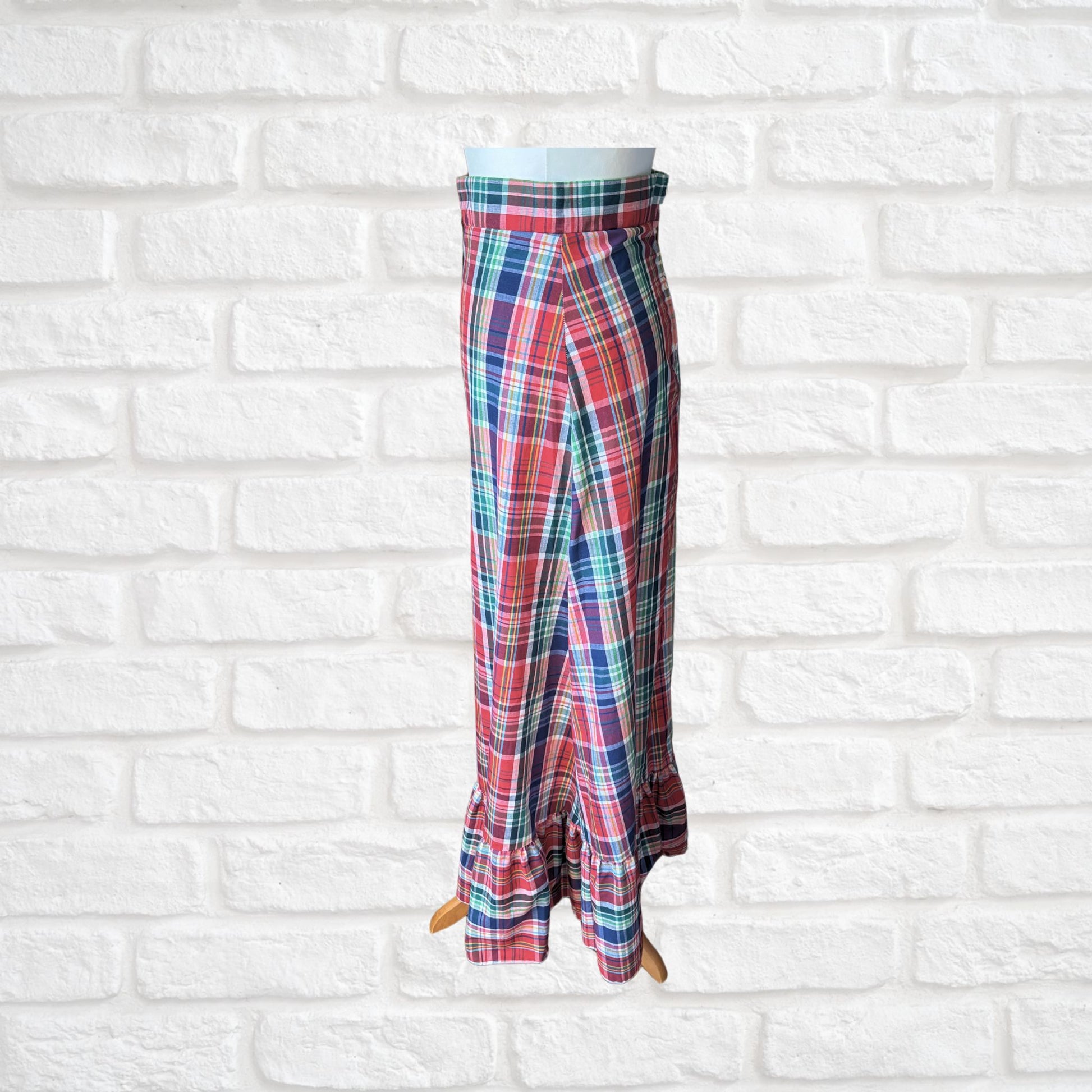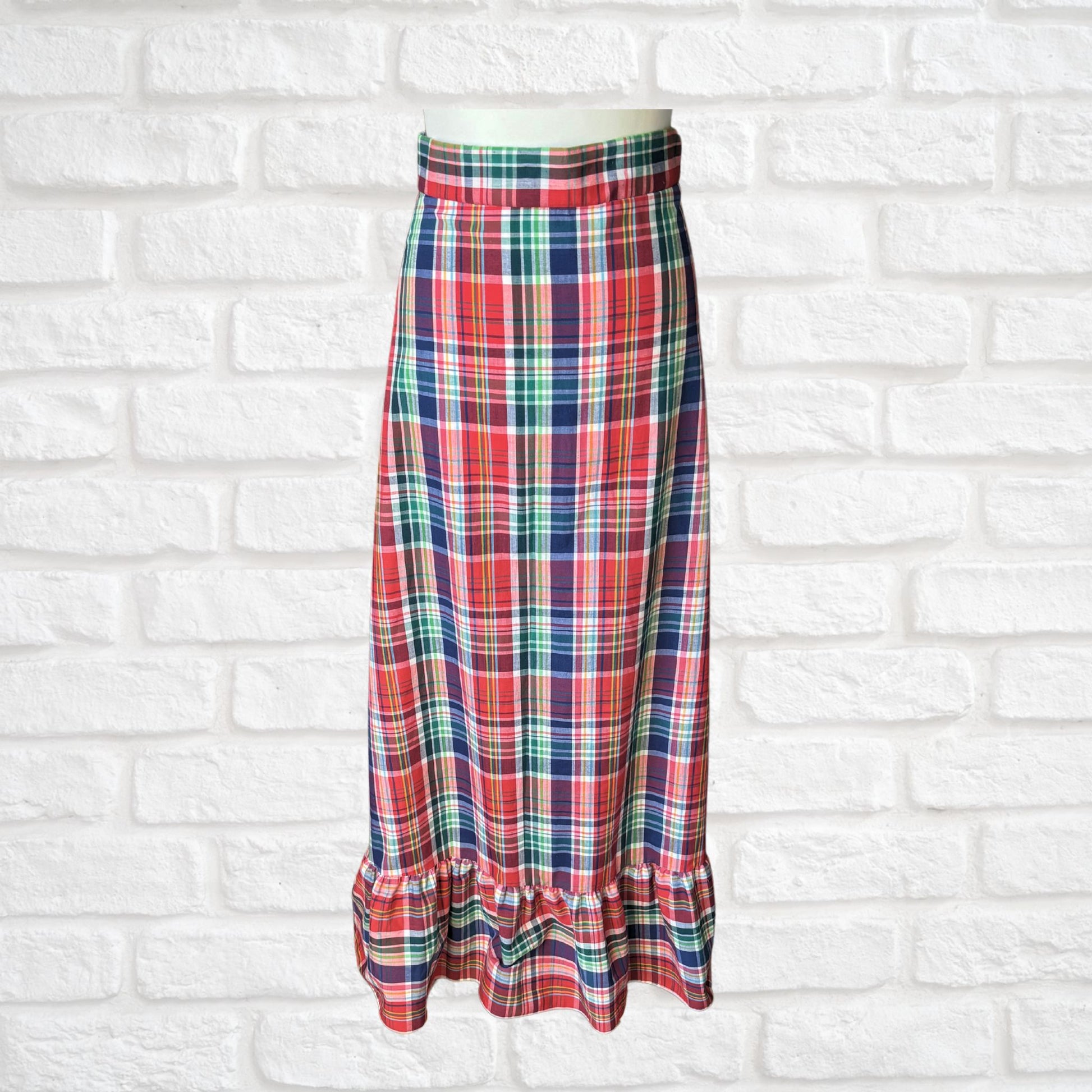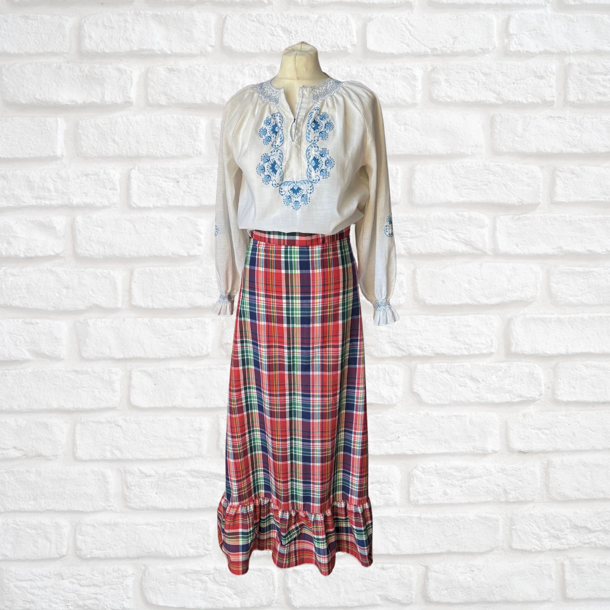 1970s Red, White, Blue and Green Checked Vintage Maxi Skirt . Approx UK size 8-10
