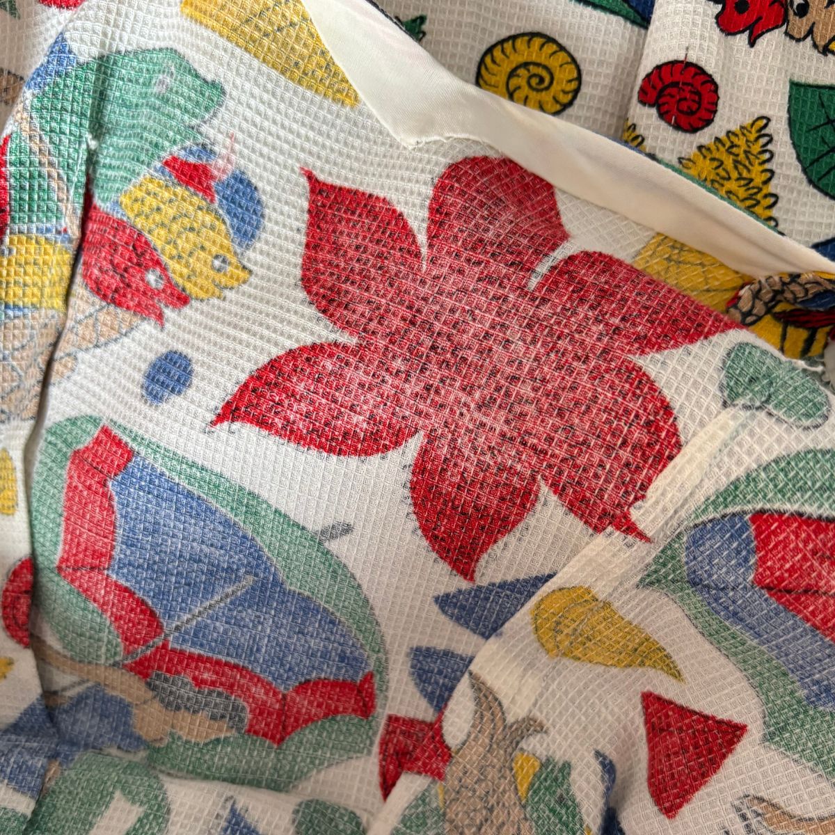 - Fabric has a waffle like texture and feels like a sturdy cotton