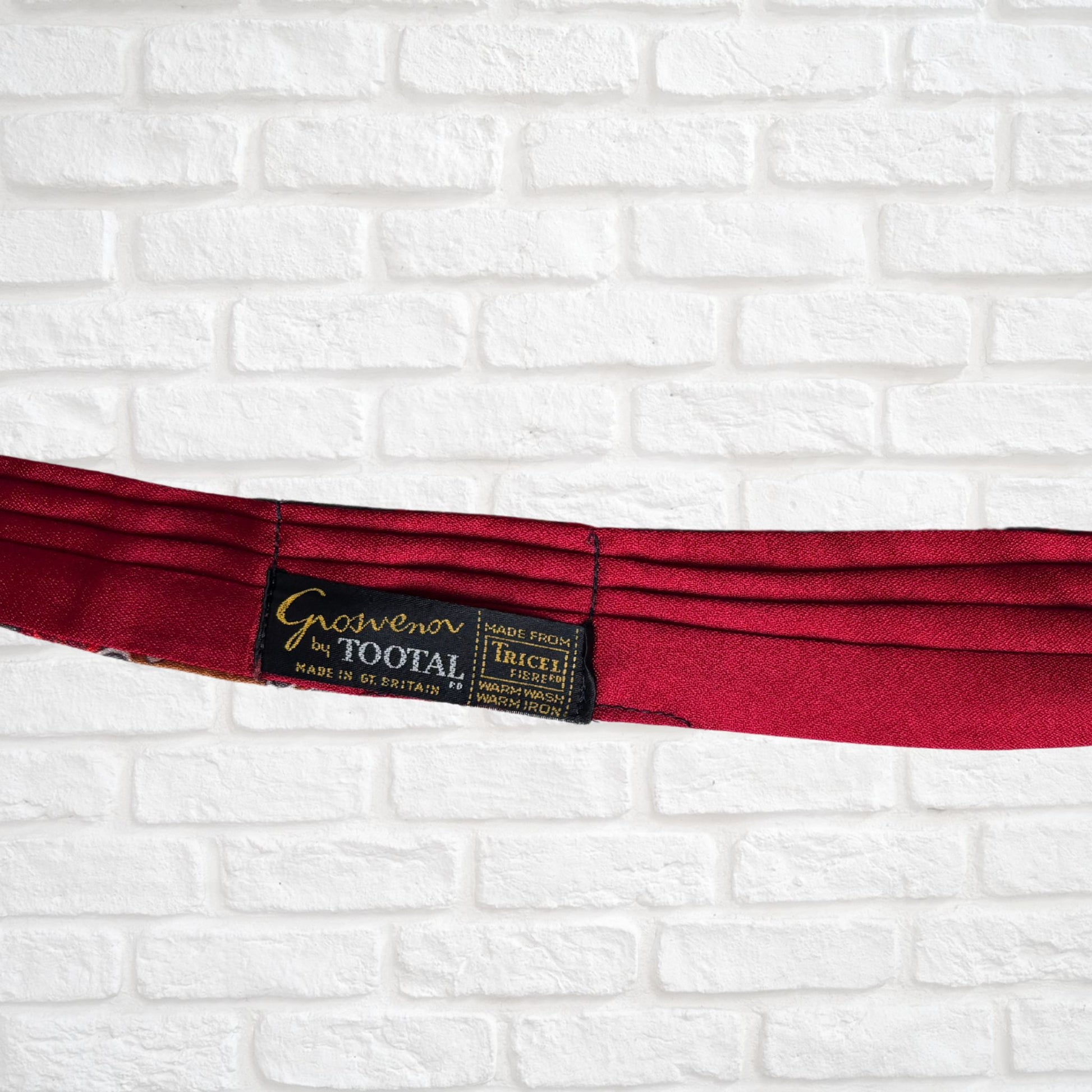 This stylish dark red and paisley print 60s vintage cravat is the perfect accessory to elevate any outfit, making you stand out with a touch of vintage style.. Whether you're attending a wedding, a formal gathering or just want to look smart, this cravat is sure to be your go-to style statement.