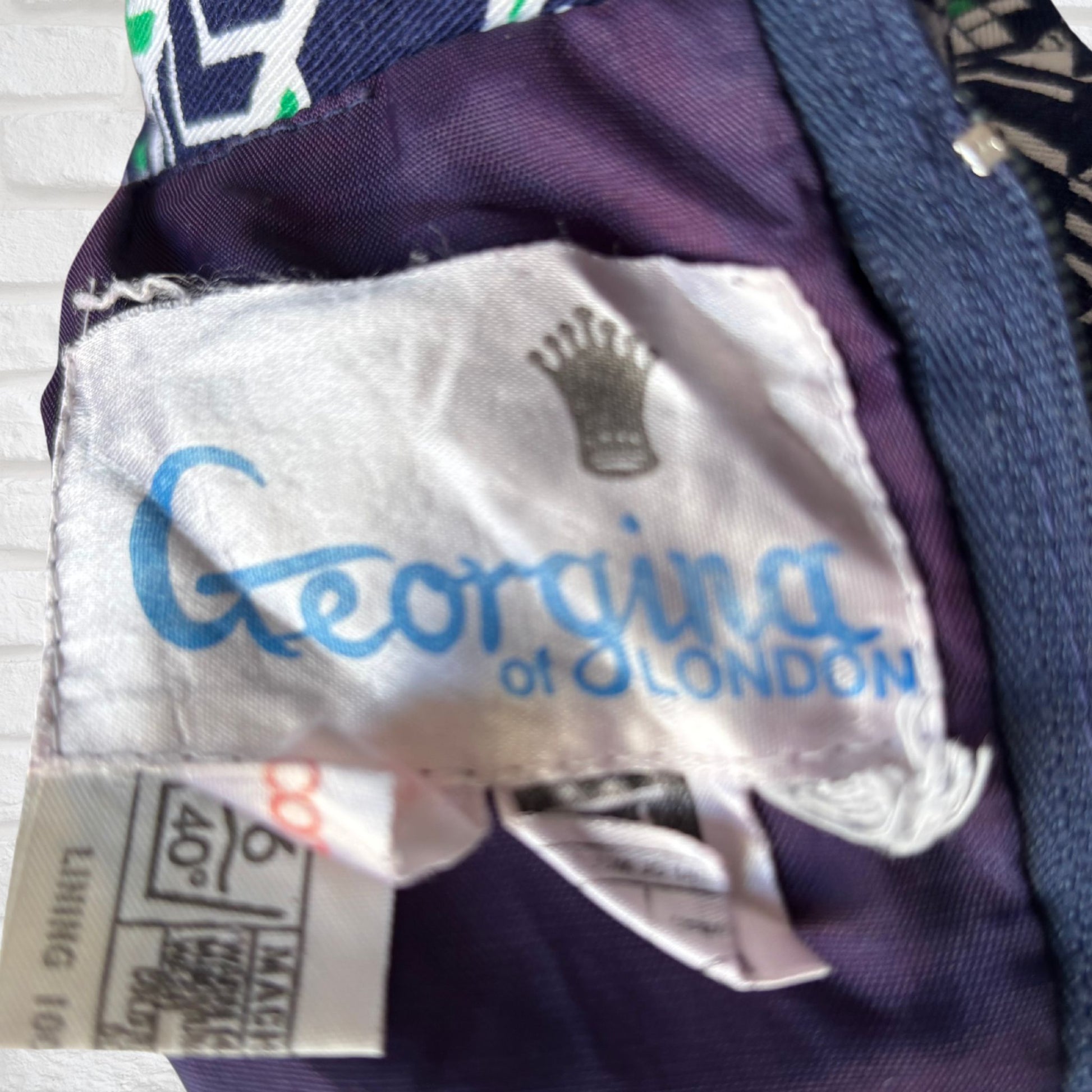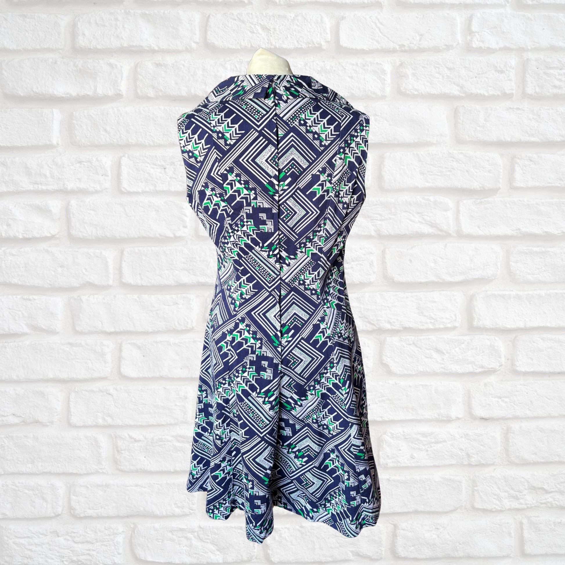 60s/70s Navy Blue Geometric Print A-Line Mini Dress. Approx UK size 10-12