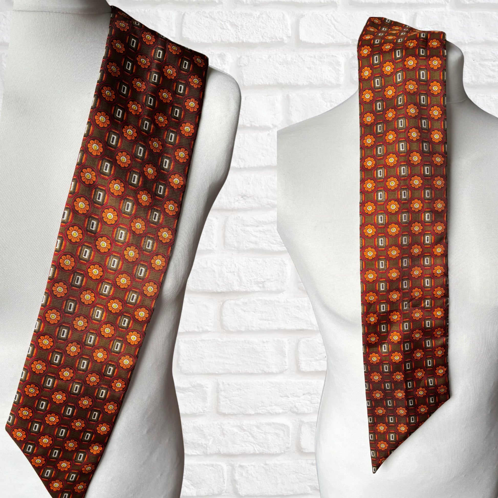 This striking floral geometric print mod style vintage cravat is the perfect accessory to elevate any outfit, making you stand out with a touch of timeless sophistication. Whether you're attending a wedding or a formal gathering or just want to look stylish , this cravat is sure to be your go-to style statement.
