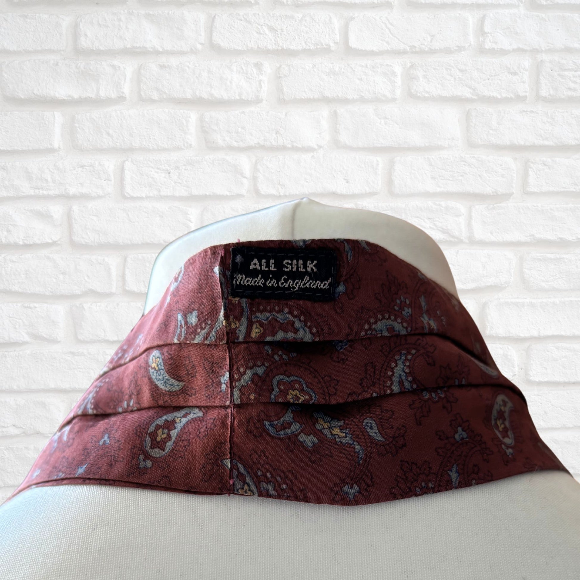 60s Mod Style Red, Grey and Yellow Paisley Print Silk Vintage Cravat