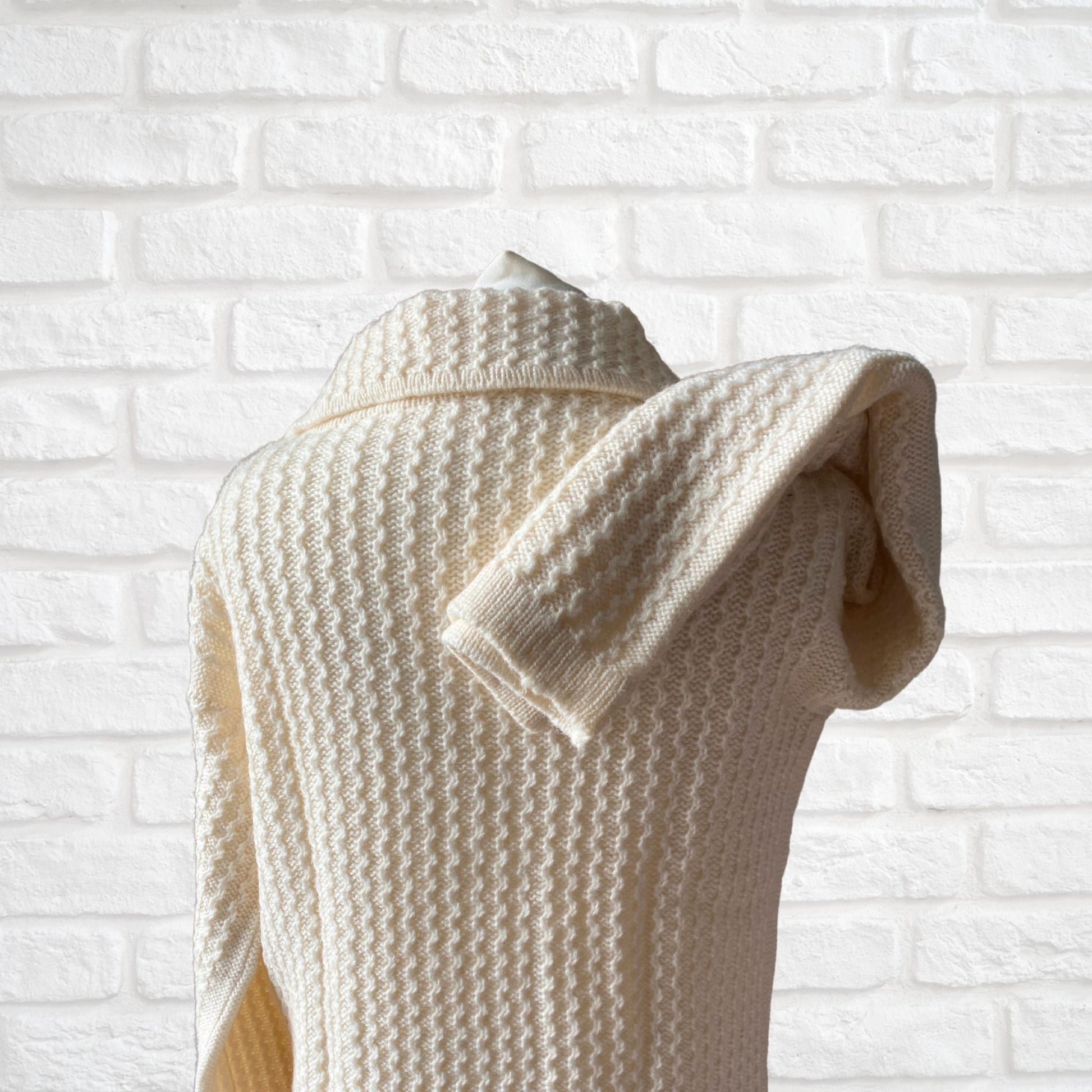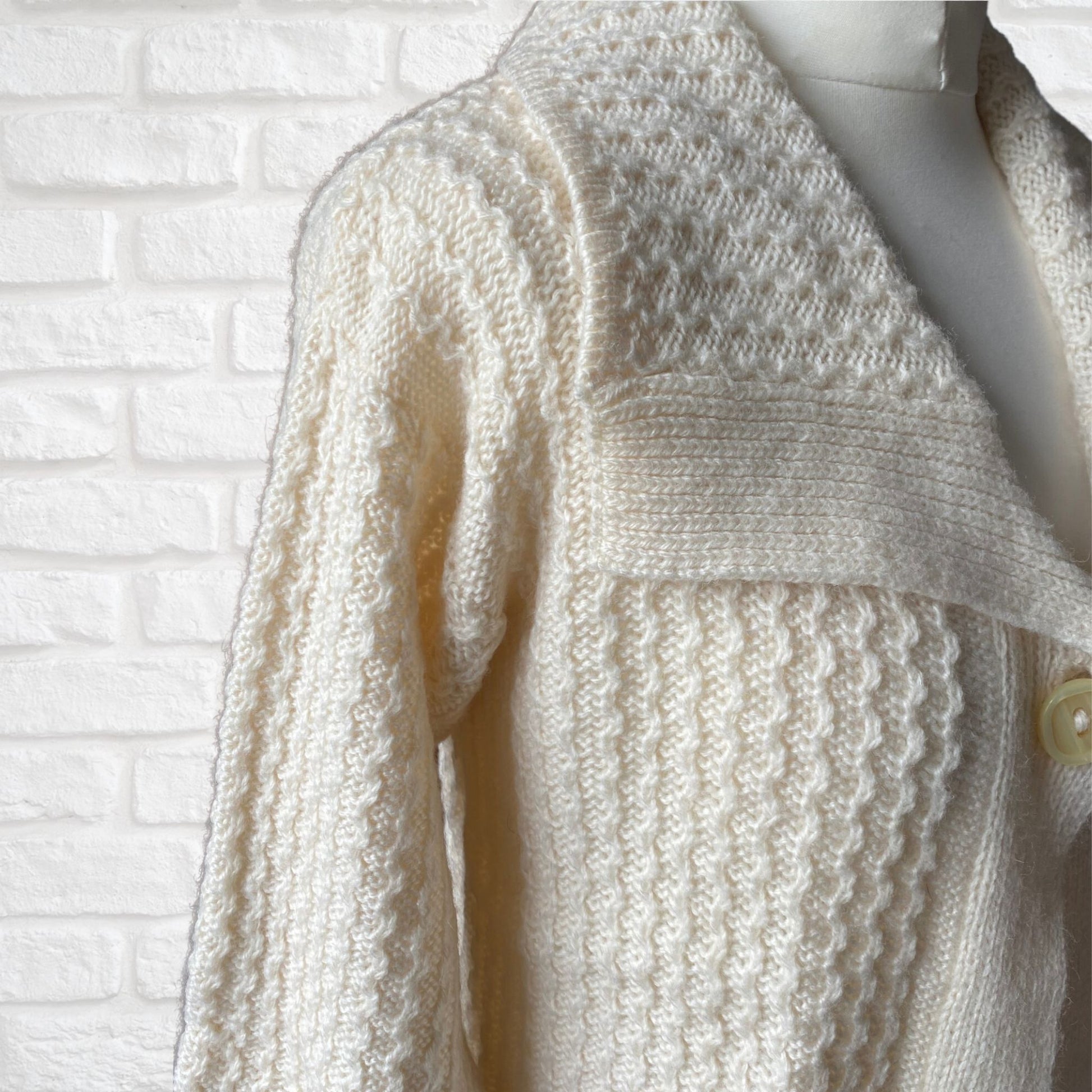 70s cream shawl collar textured knit cardigan. Approx UK size 12-16