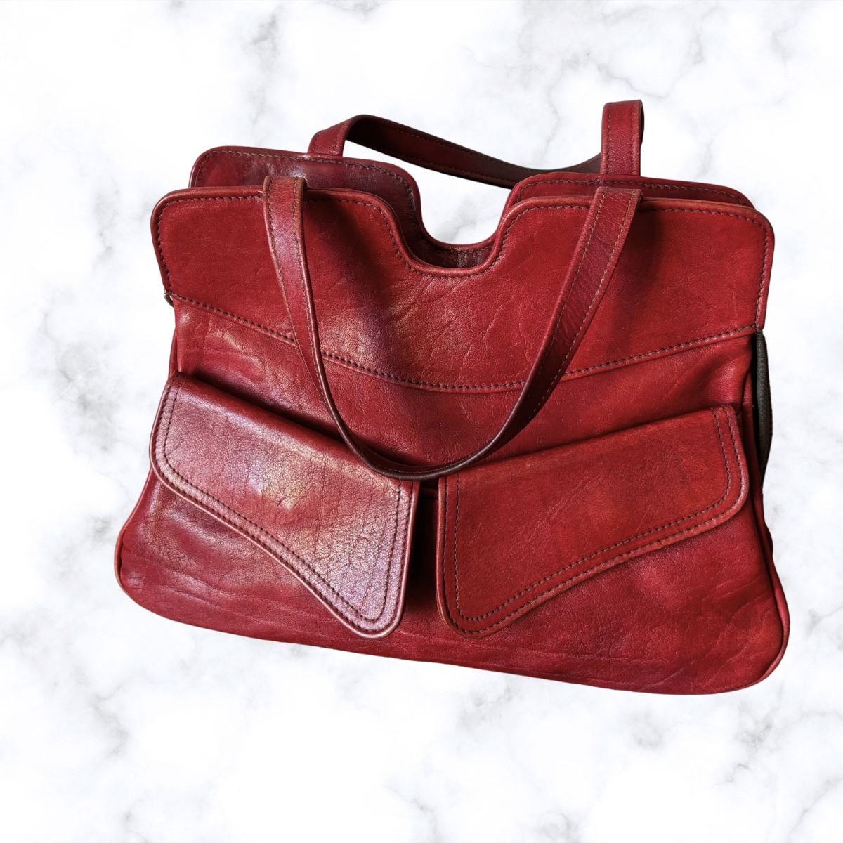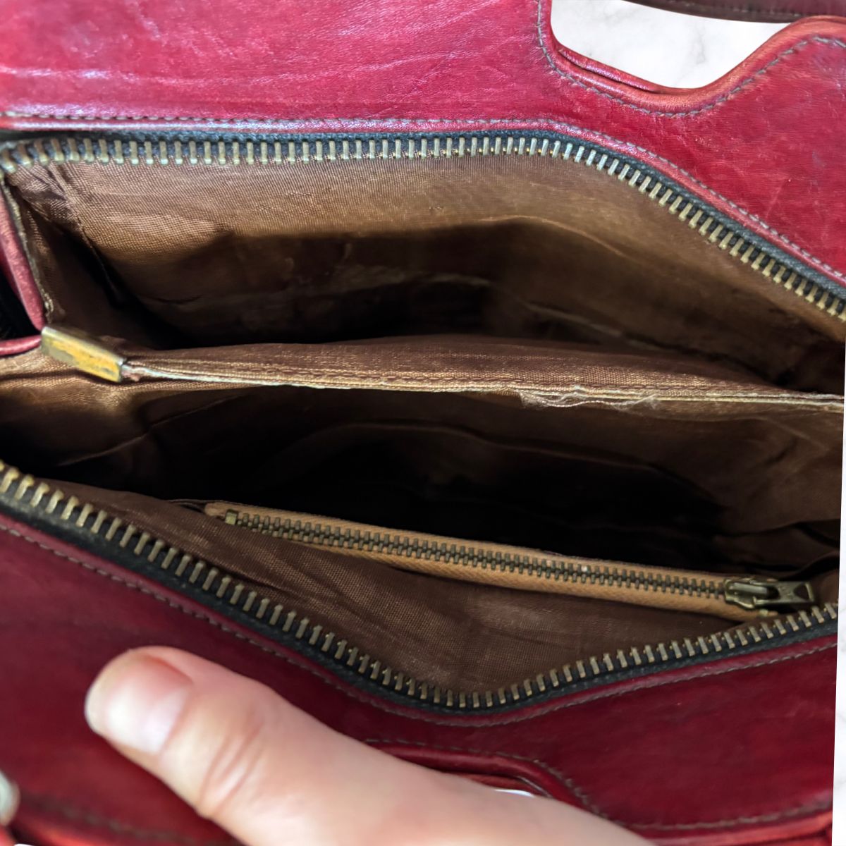 70s Dark Red Leather Vintage Shoulder / Top Handle Bag with Detachable Strap
