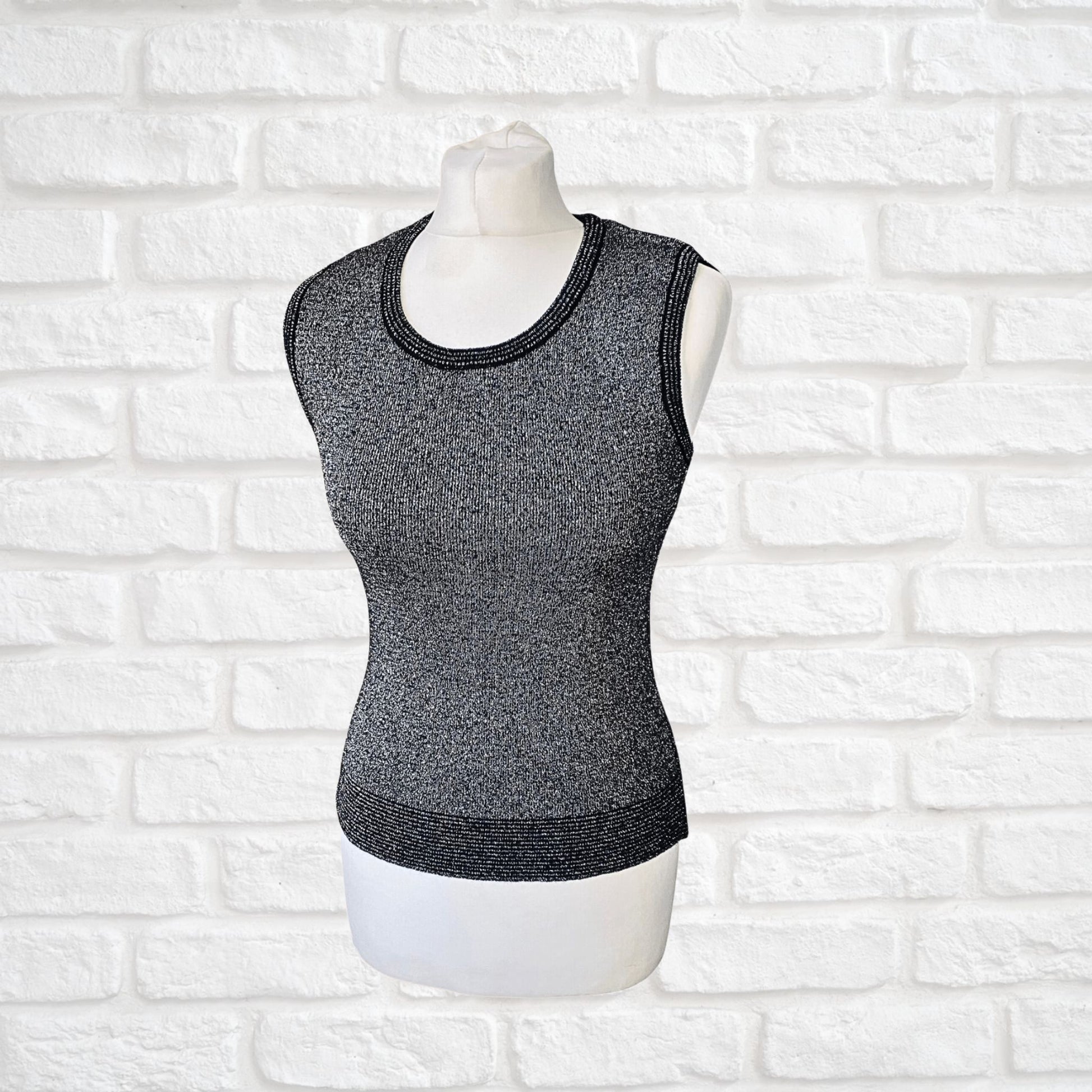 70s Disco Style Black and Silver Sparkly Tank Top. Approx UK size 6-12
