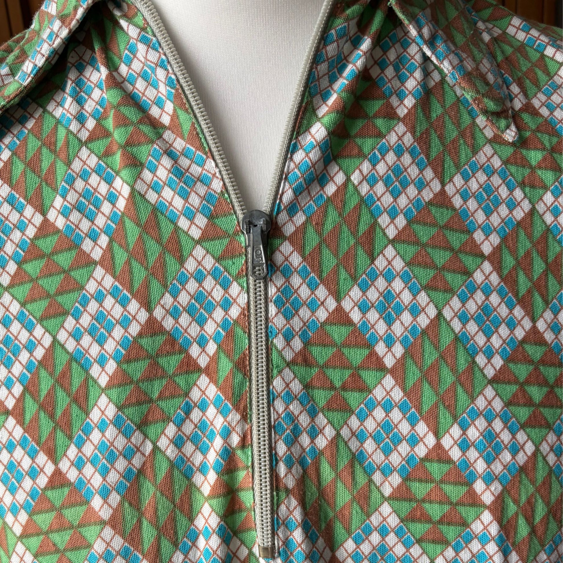70s Geometric Print Cotton Vintage Shirt with Zip Front. Approx UK size M - L ( men) 14 -16 (women )