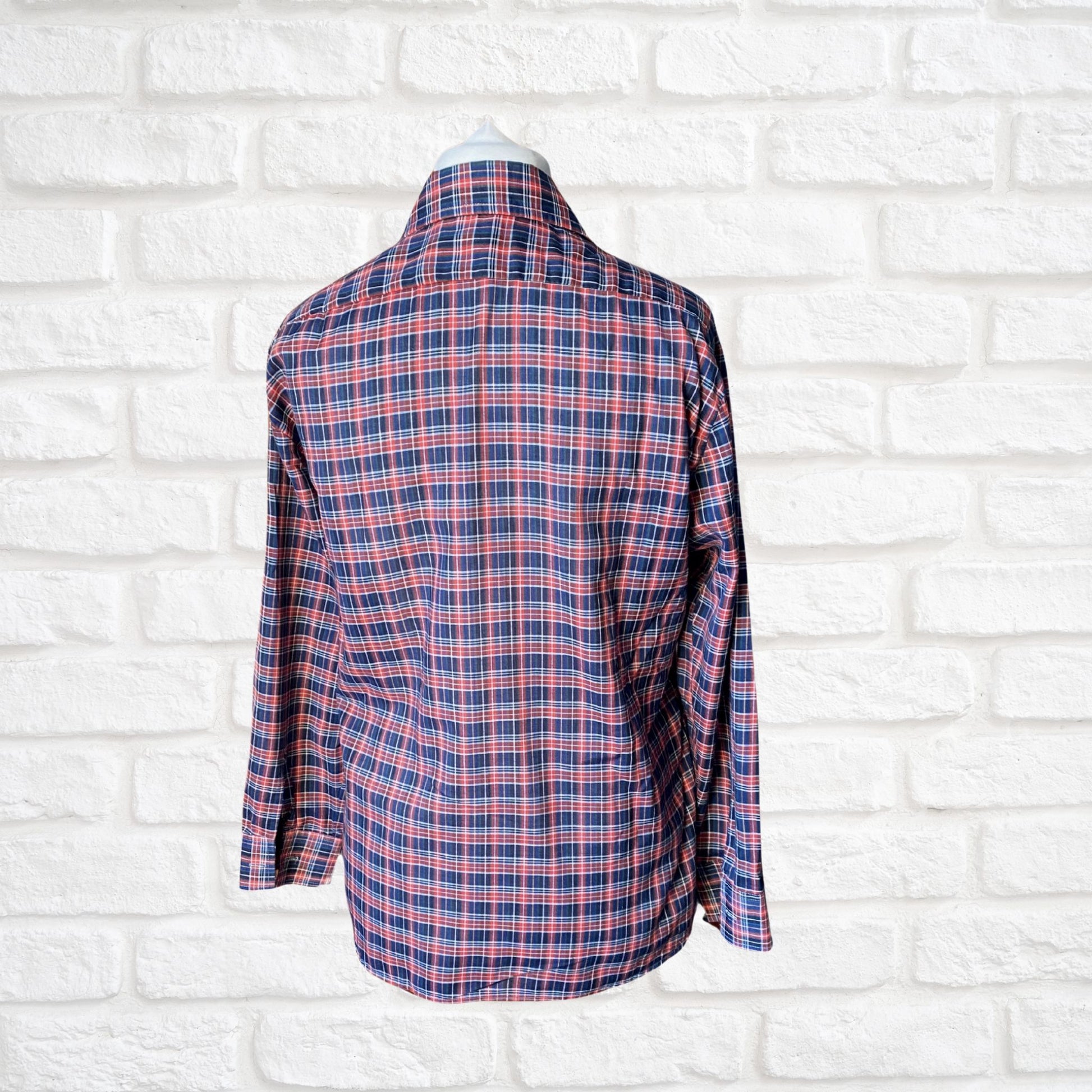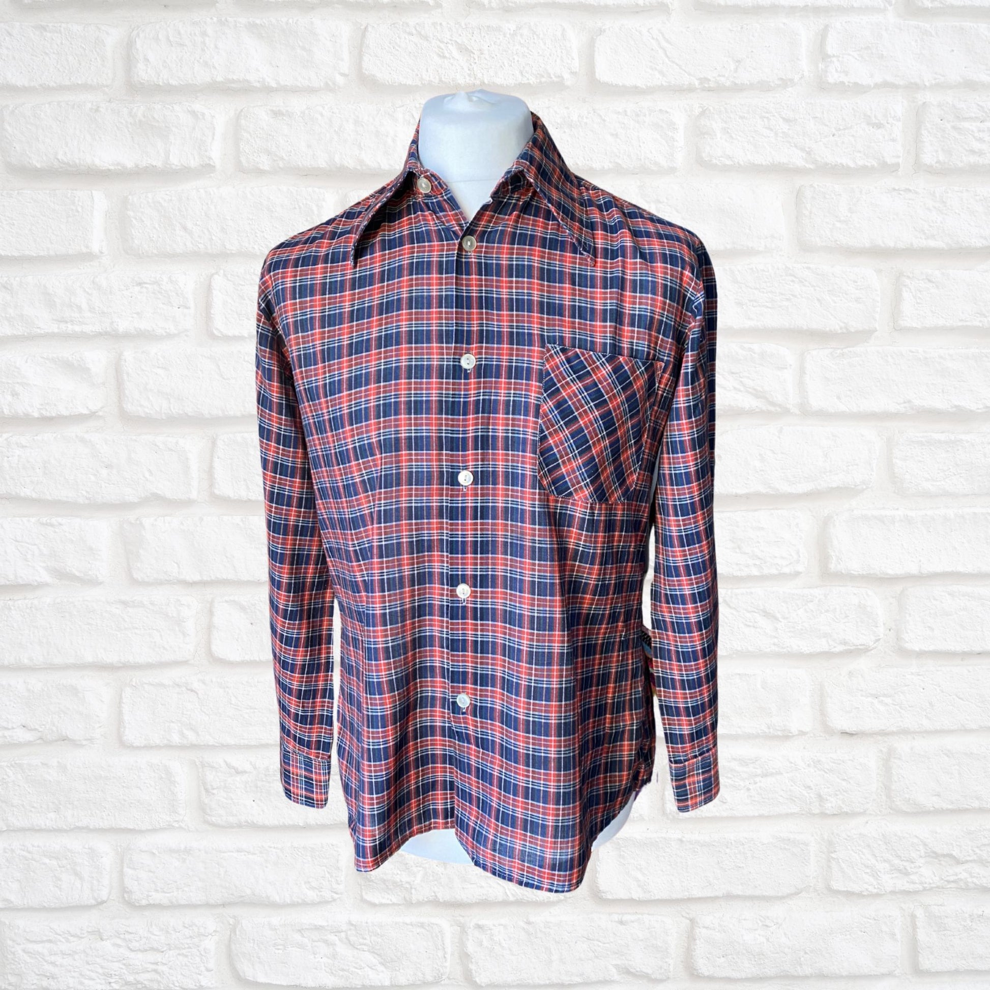 70s Red and Blue Checked Vintage Shirt with Dagger Collar. Approx UK size M to L (men) 12 - 14 (women)