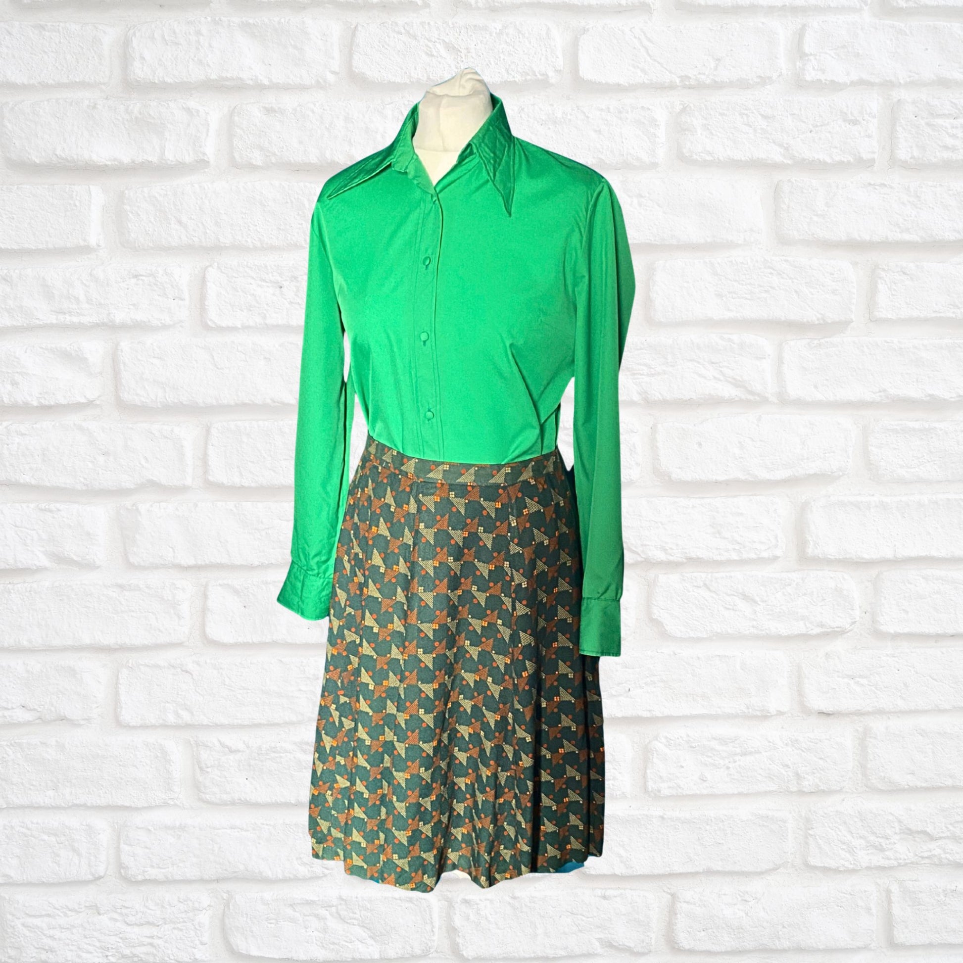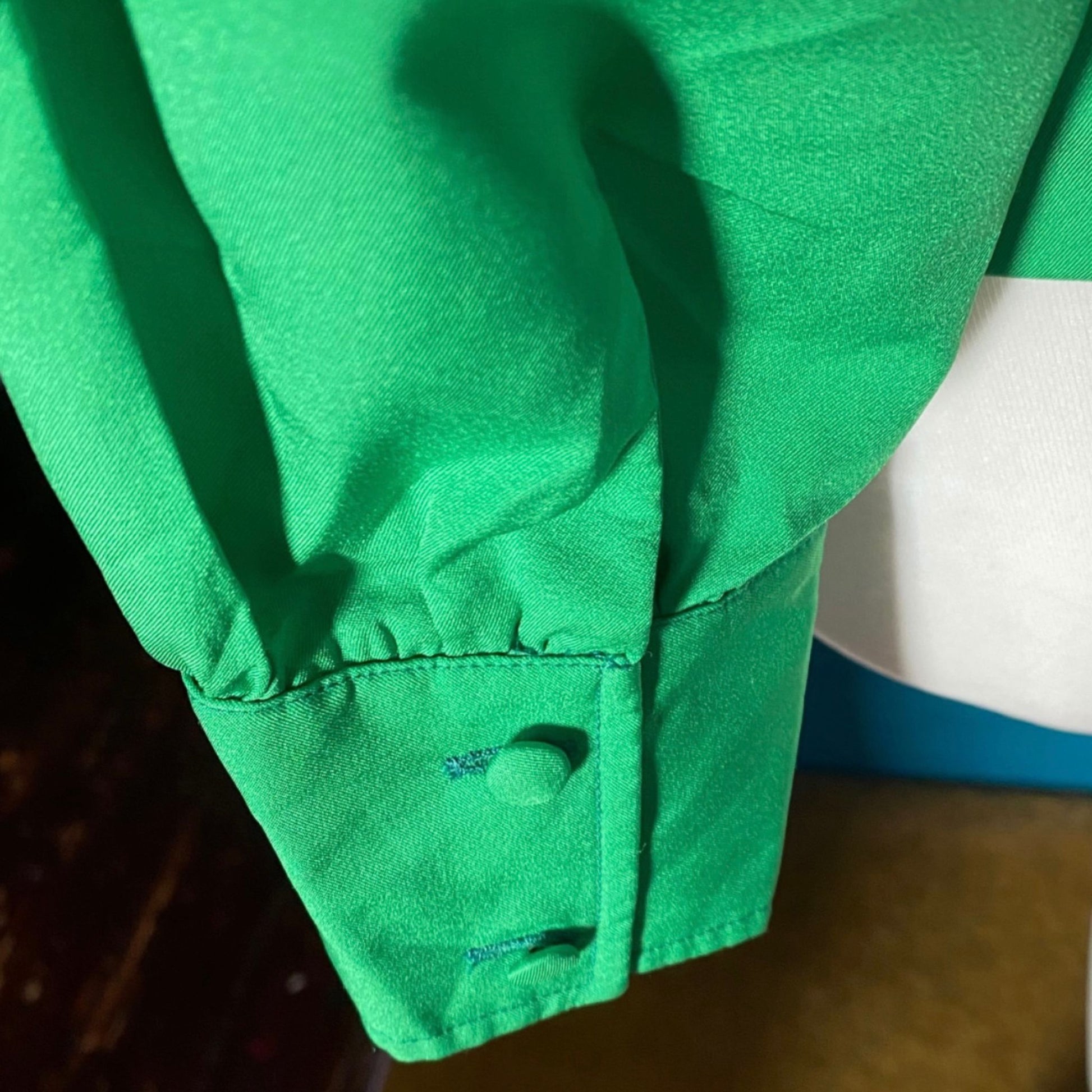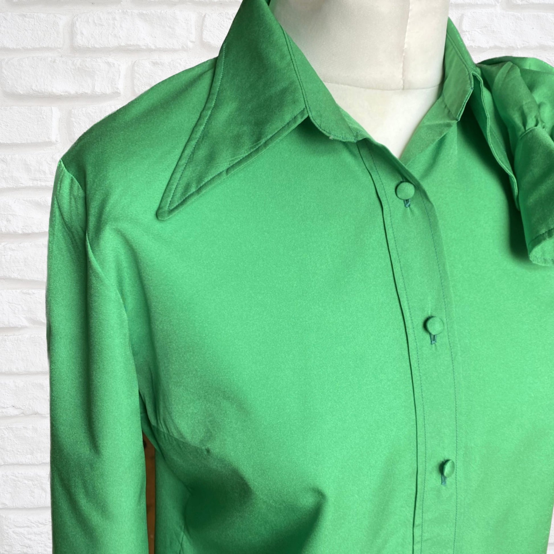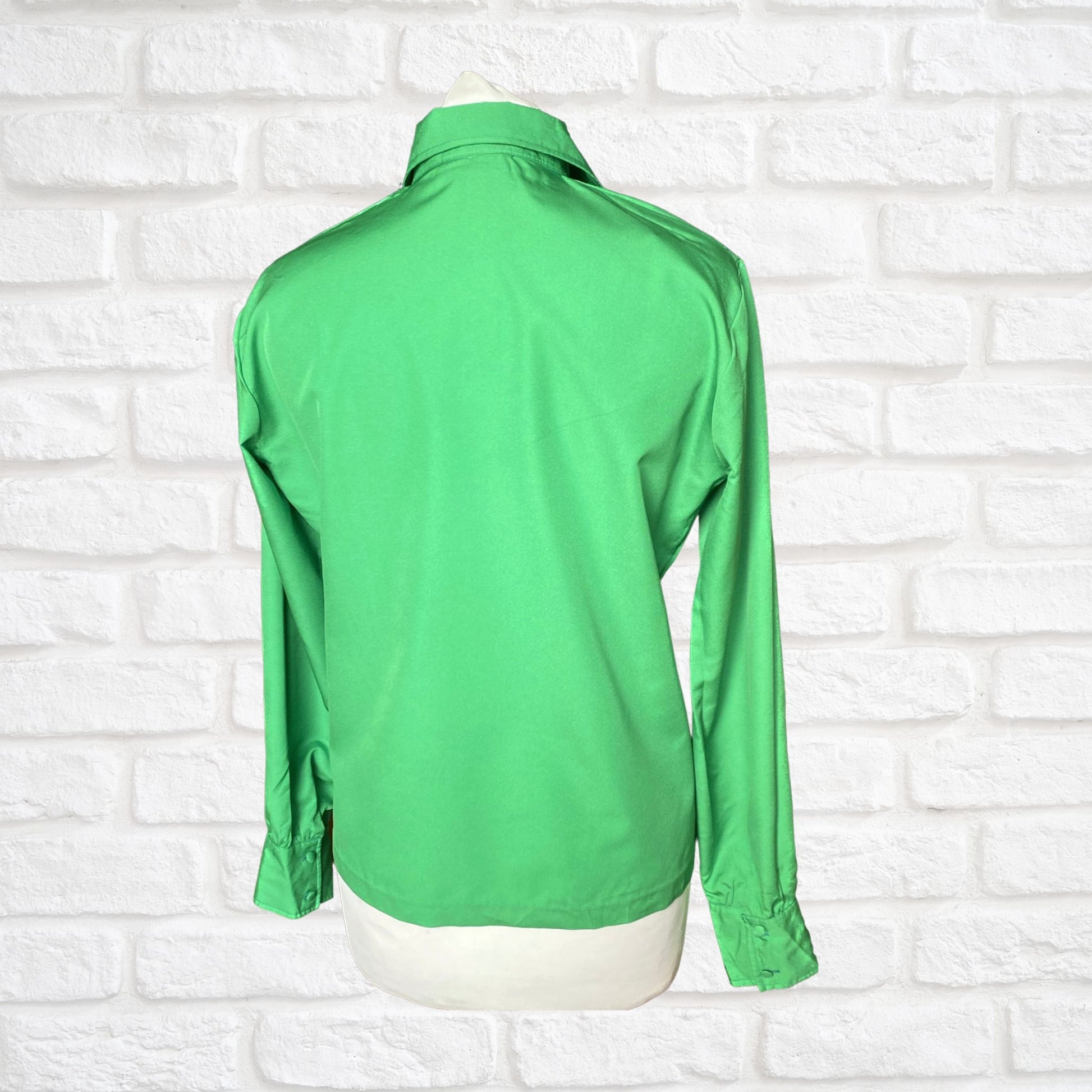 70s Vibrant Green Long Sleeved Vintage Blouse with Dagger Collar . Approx UK size 10-12