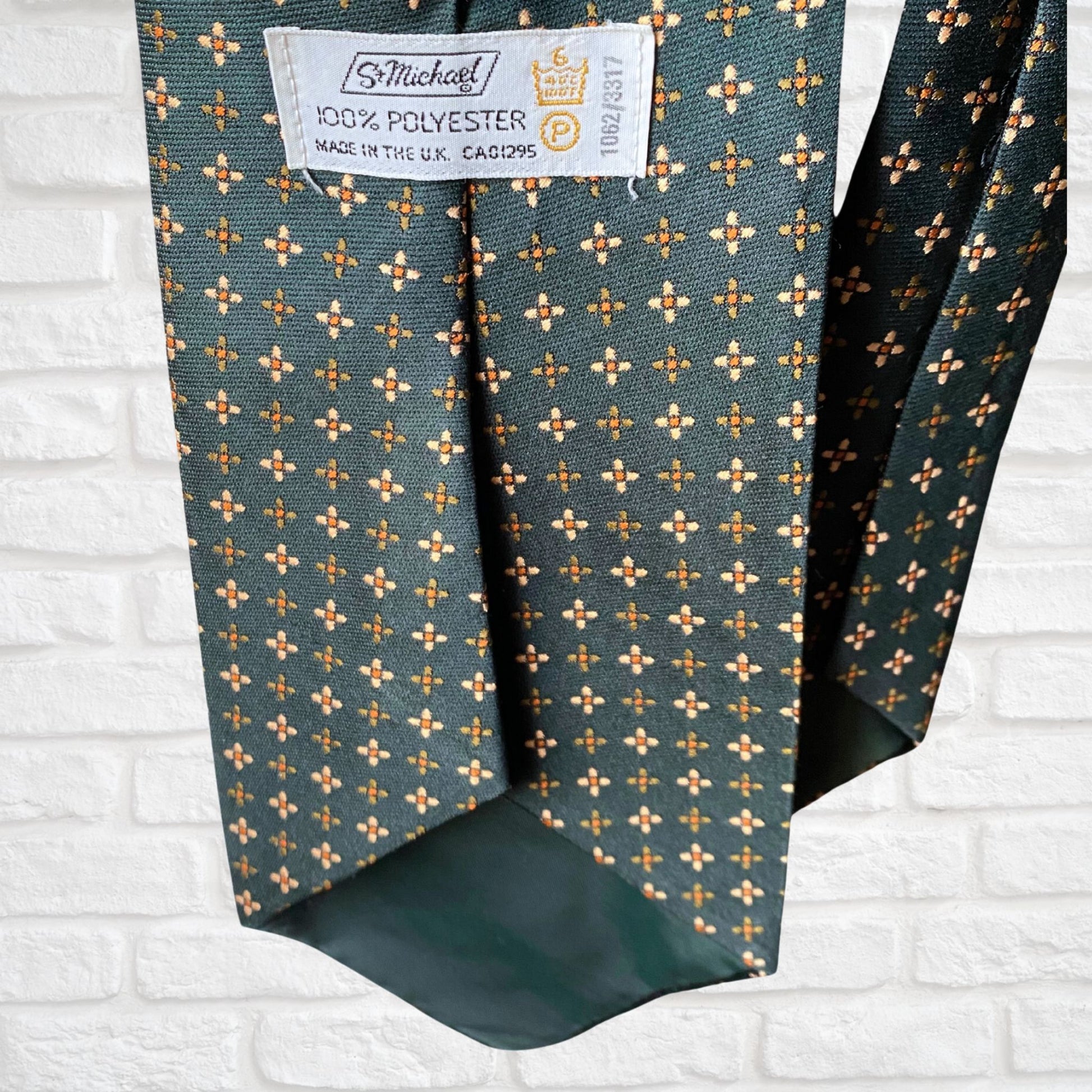 This vibrant and stylish vintage kipper tie will add a touch of retro charm to your wardrobe. With its eye-catching green, cream and orange pattern, this necktie is a true statement piece. Wear it to a wedding, a formal business event, or even a casual gathering,it will effortlessly add vintage elegance to any occasion.