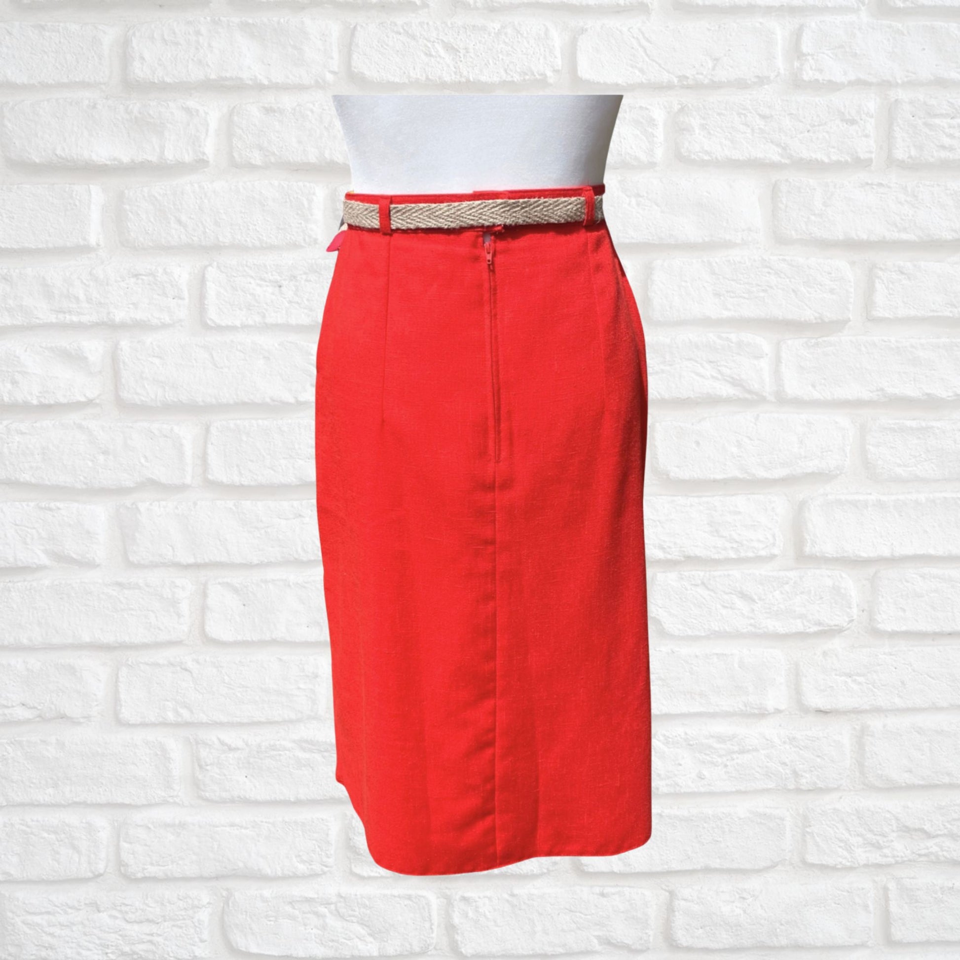 80s Red Vintage Midi Skirt with Contrasting Belt.Approx UK size 8-10