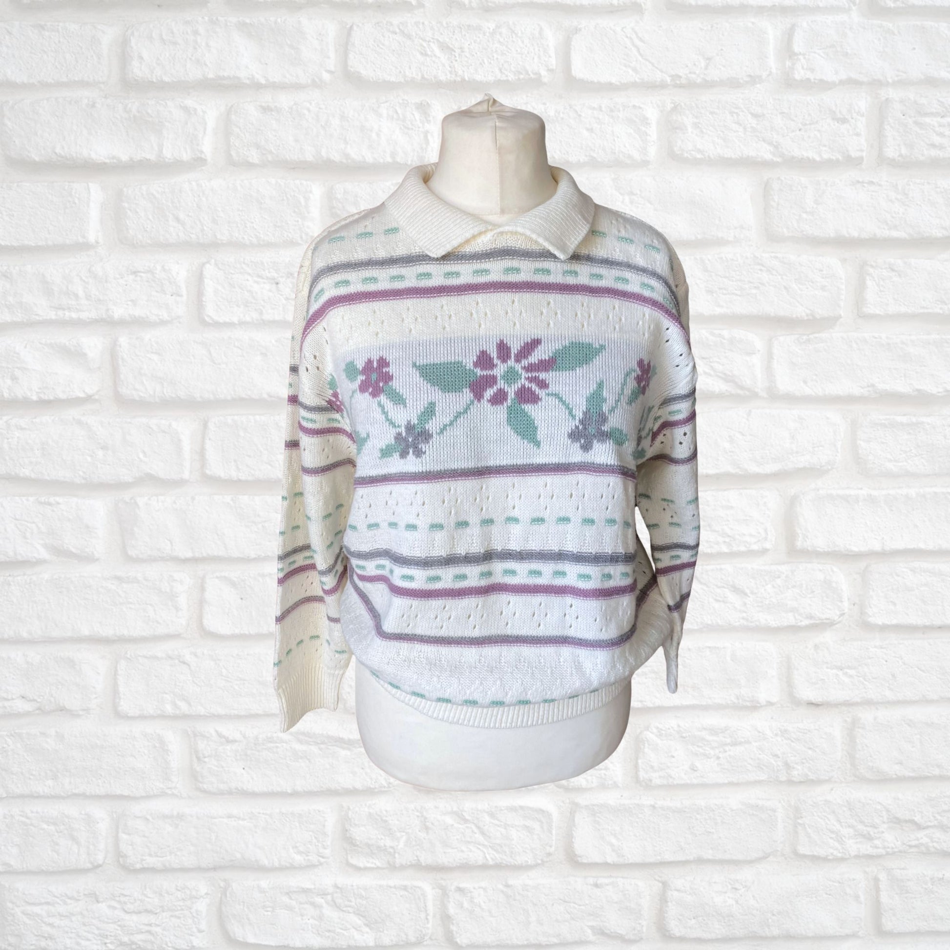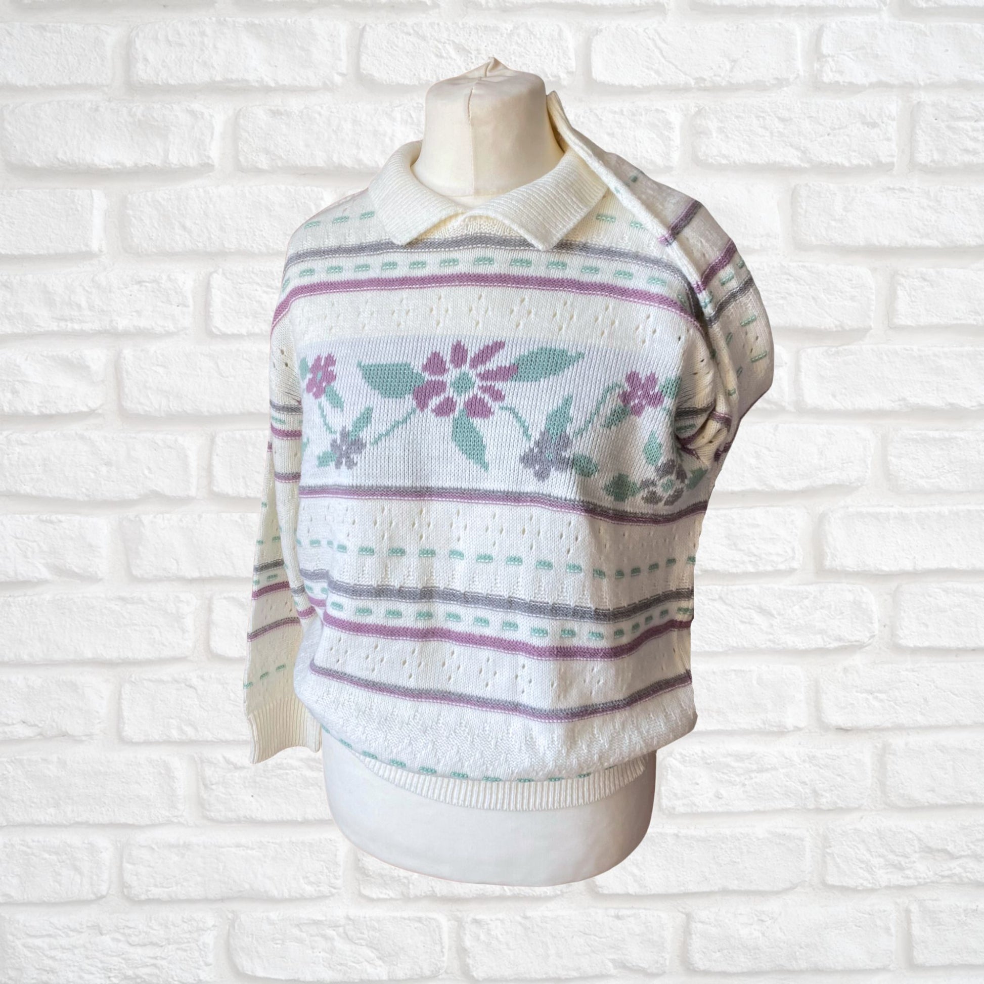 80s soft pastel collared lightweight floral jumper. Approx UK size 12-18