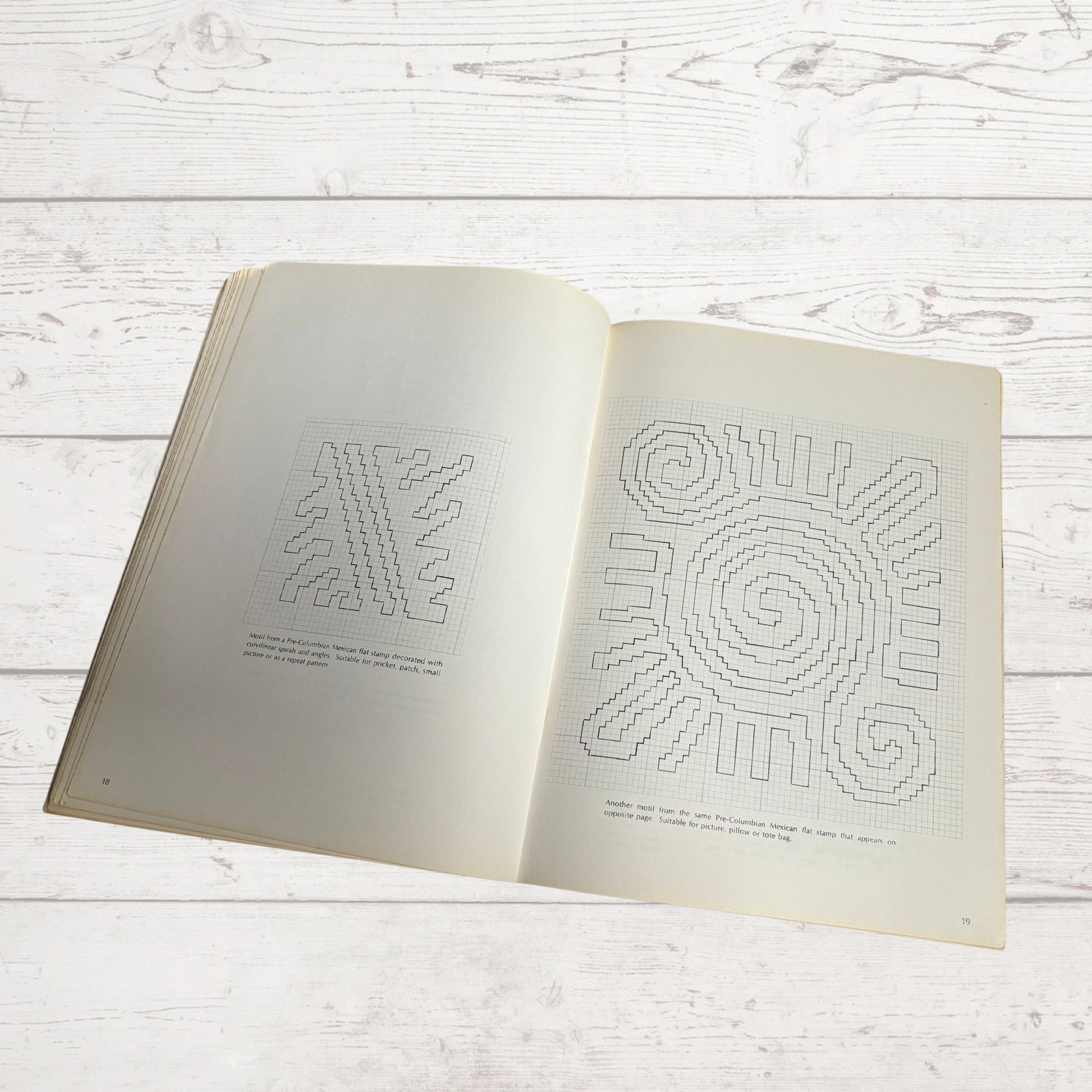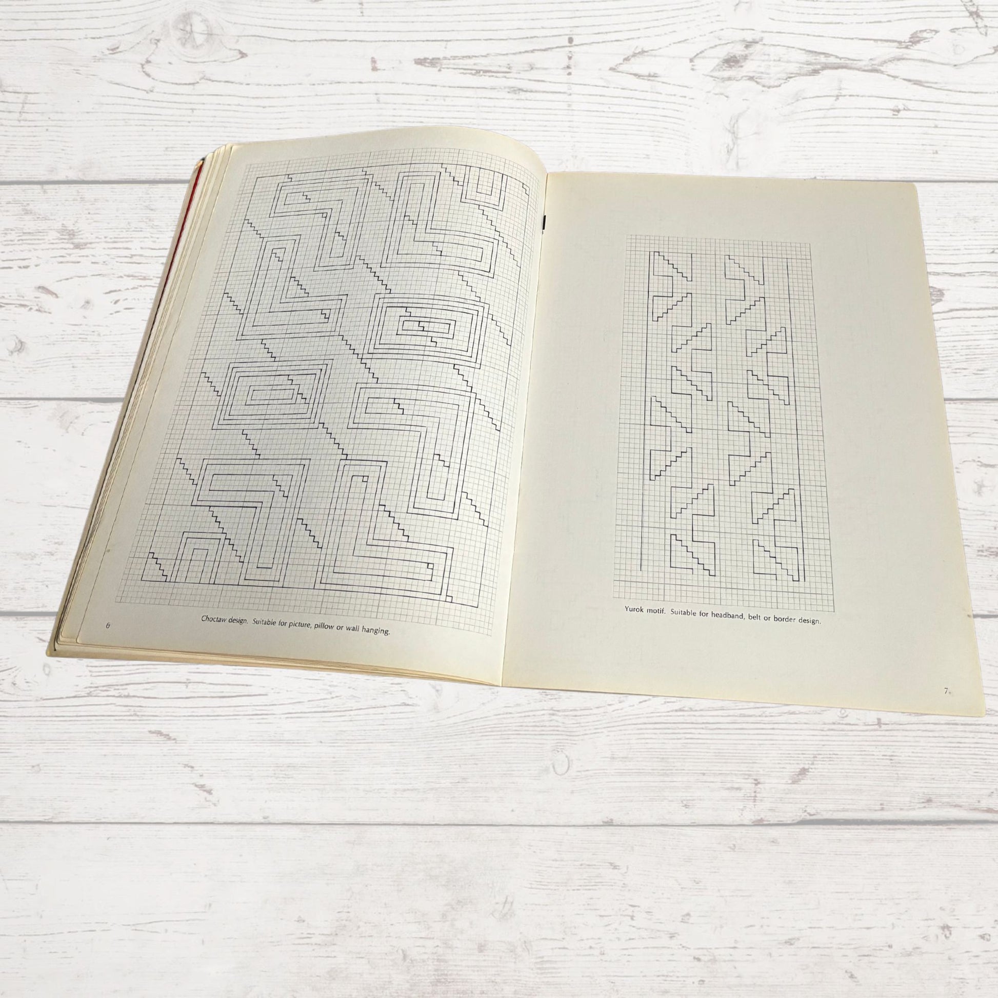 This fantastic 1970s book is full of needlepoint designs adapted from authentic Native American motifs to create colourful pillows, belts, handbags and more. This vintage craft book highlights the materials required in the introduction and then the rest of the book consists of designs which can be traced over.