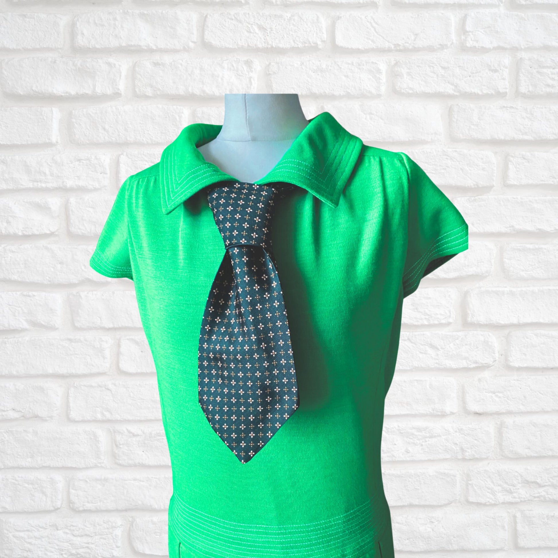 Step into the spotlight in this cute vibrant green vintage dress. The cute sailor-style collar, pleated skirt, and white decorative stitching will add a touch of retro flair to your wardrobe.