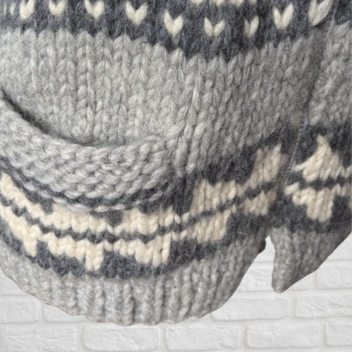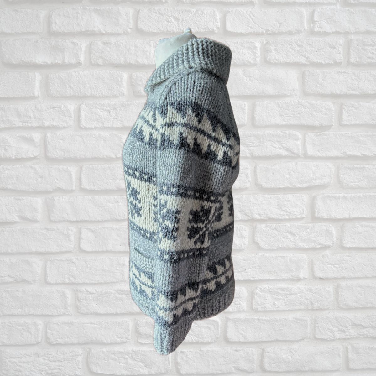 Cowichan Style 70s Vintage Chunky Grey Wool Zip Up Cardigan. Approx UK size S - M ( men)/12-16 ( women)