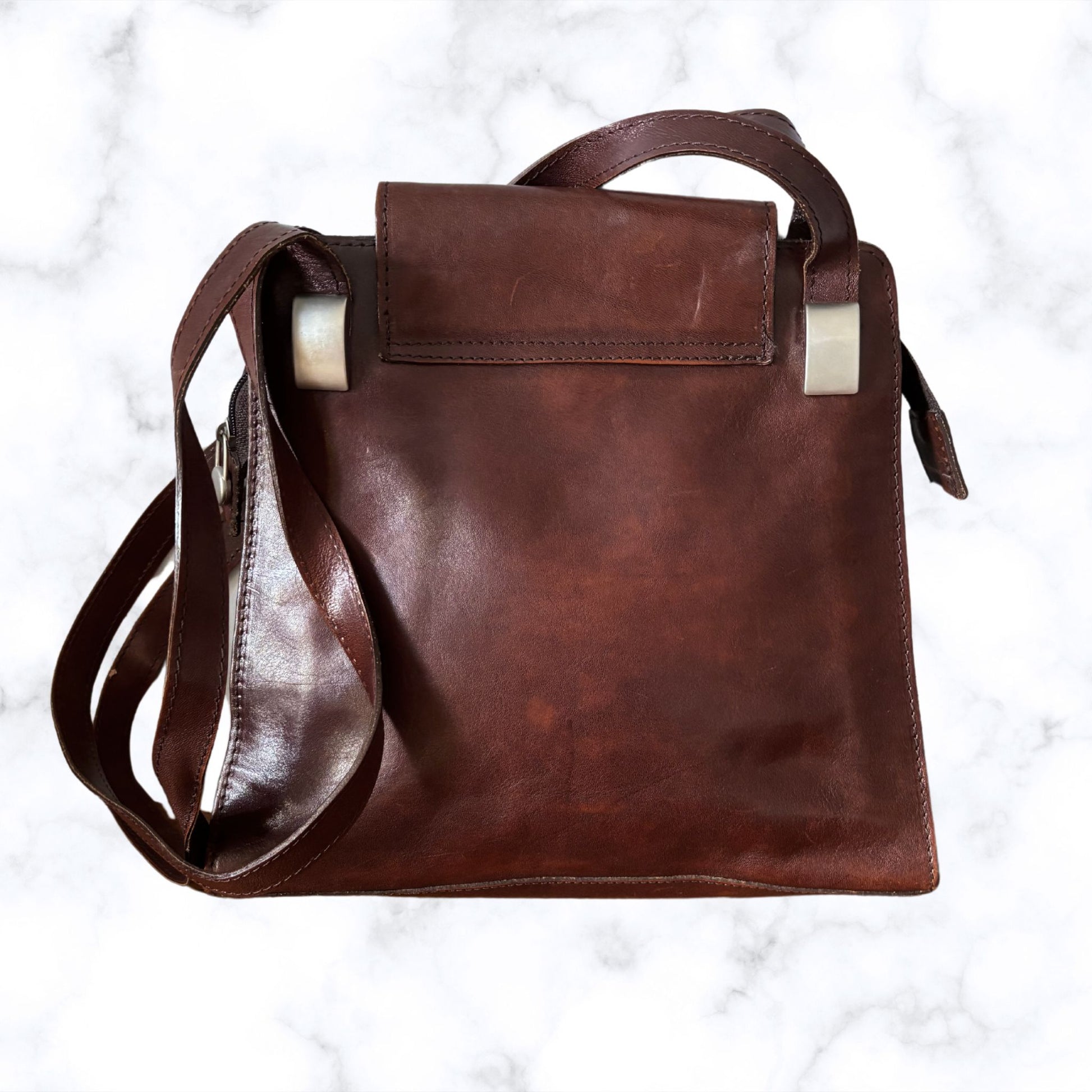 Dark Brown Leather Vintage Shoulder Bag by Icci. Stylish and Secure