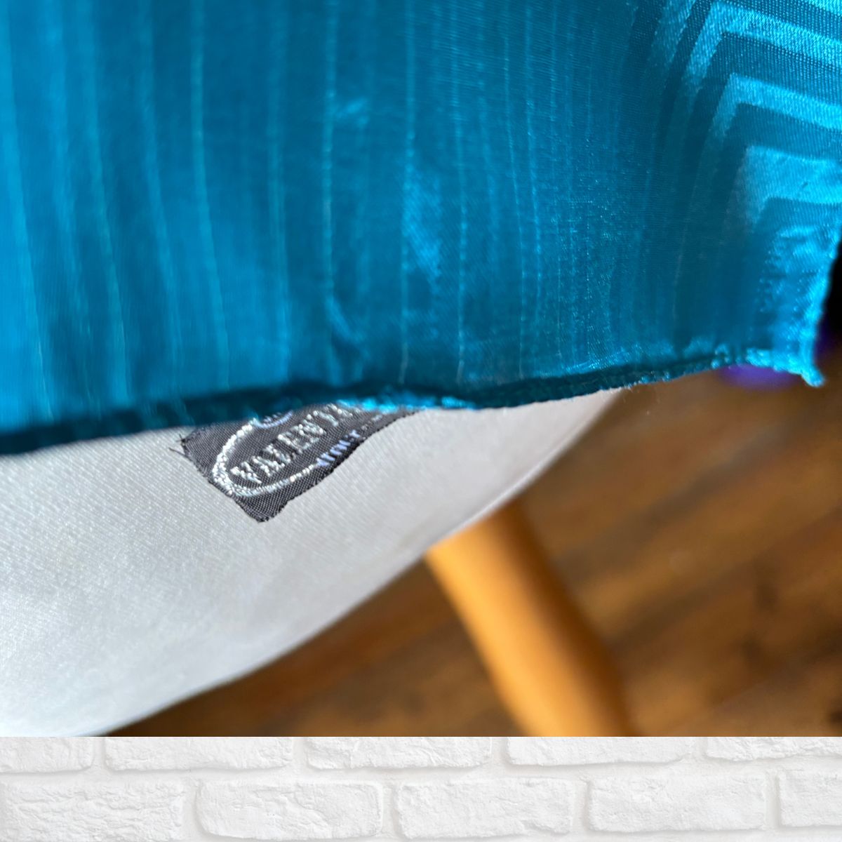 - Fabric feels like a silky polyester with a sheen that shimmers in the light