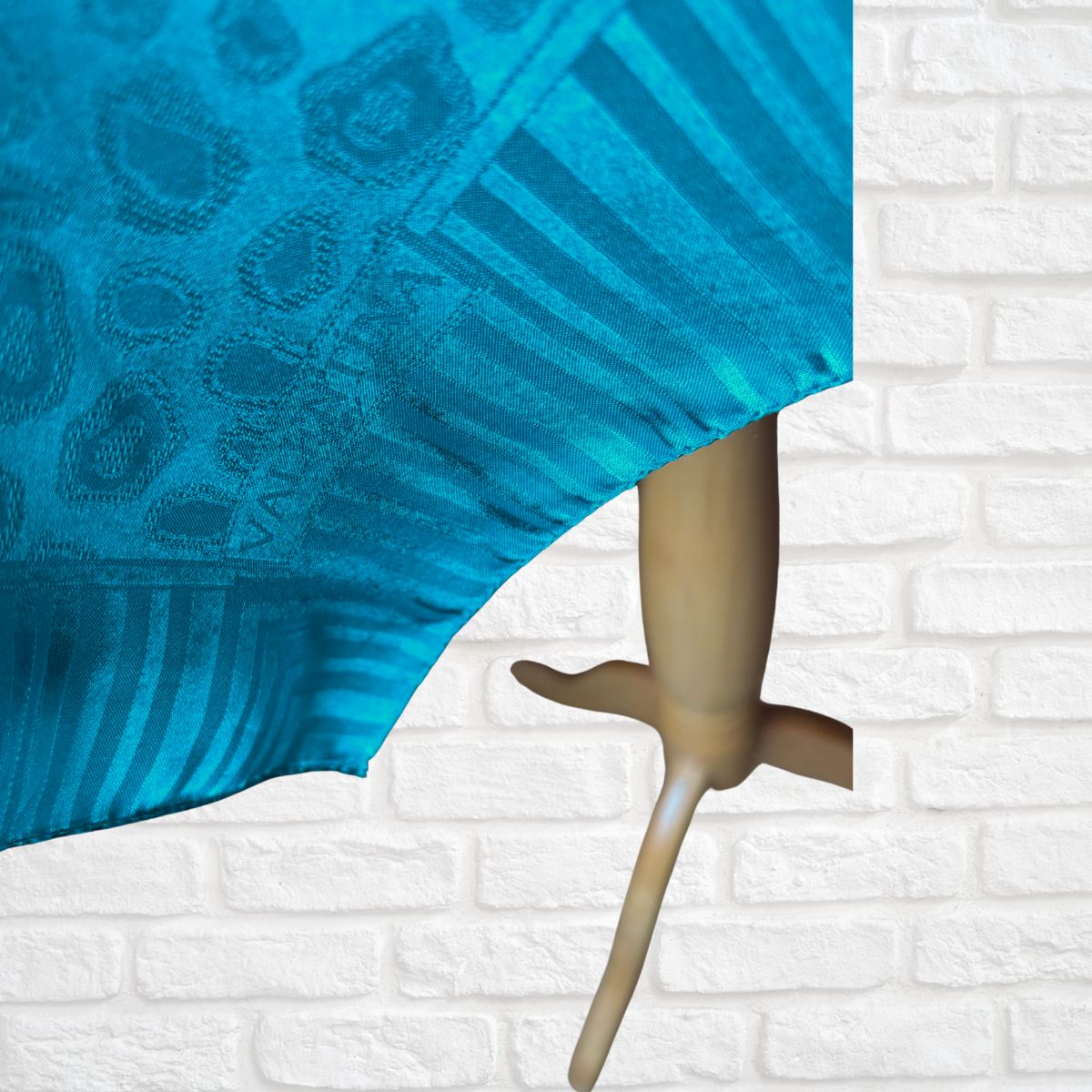 This beautiful shimmering vintage scarf in a stunning aquamarine shade features an eye catching abstract print. Versatile and chic, and perfect for gifting, this large scarf can be worn in countless ways to elevate your style. Perhaps loose around your shoulders, in your hair, or around your neck and tied to the side, the possibilities are endless.