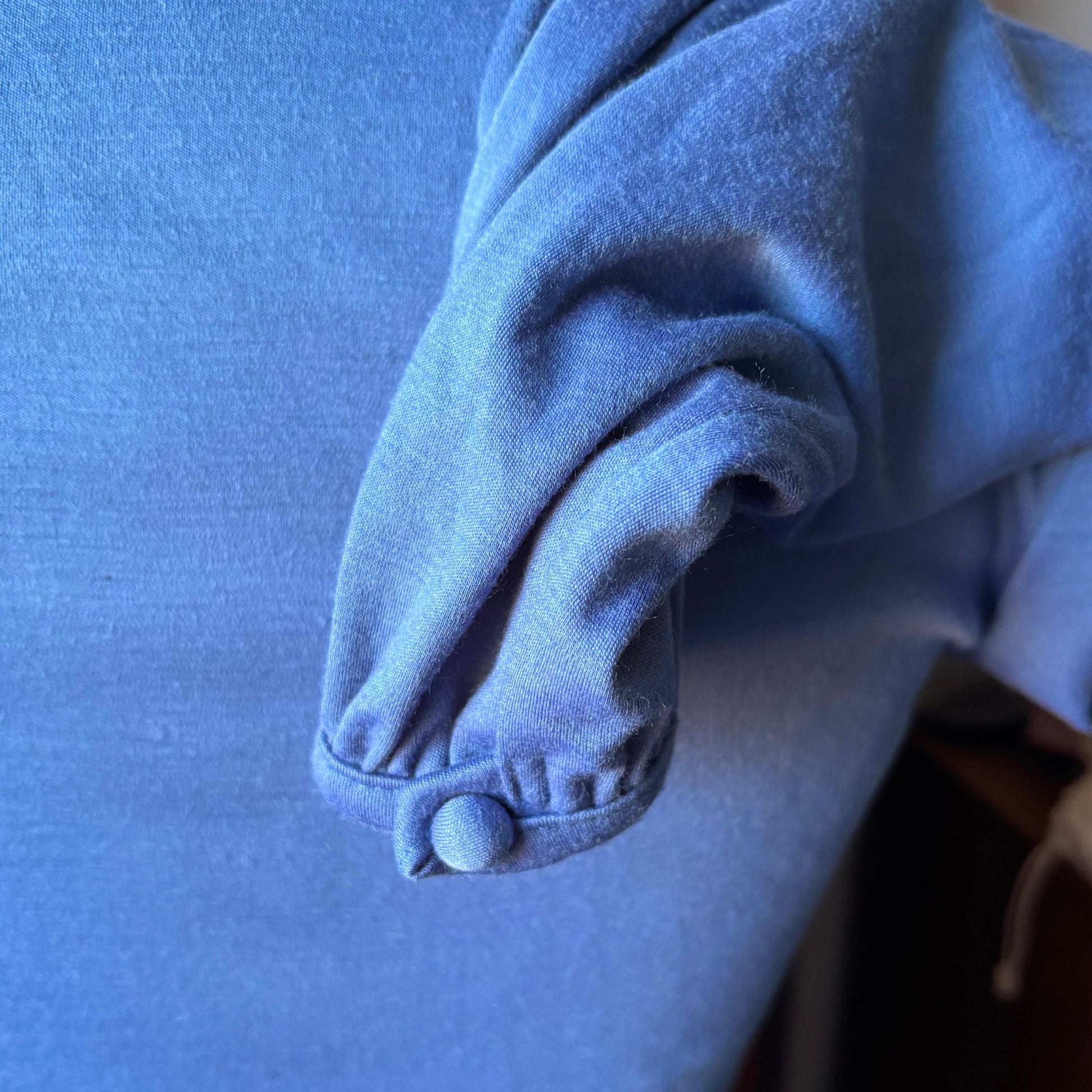 Elegant Blue 1940s style Long-Sleeved 70s Vintage Midi Dress. Approx UK size 8-10