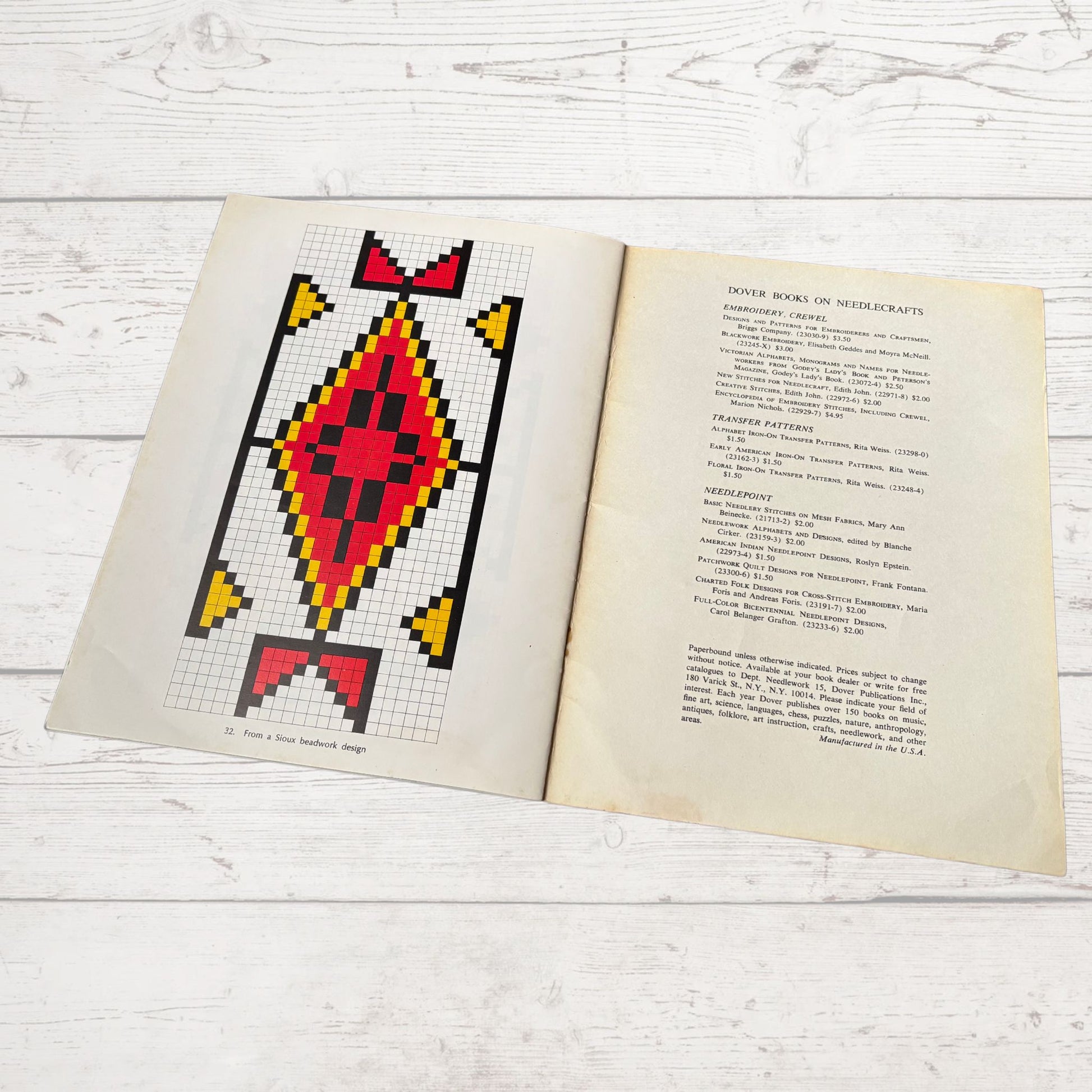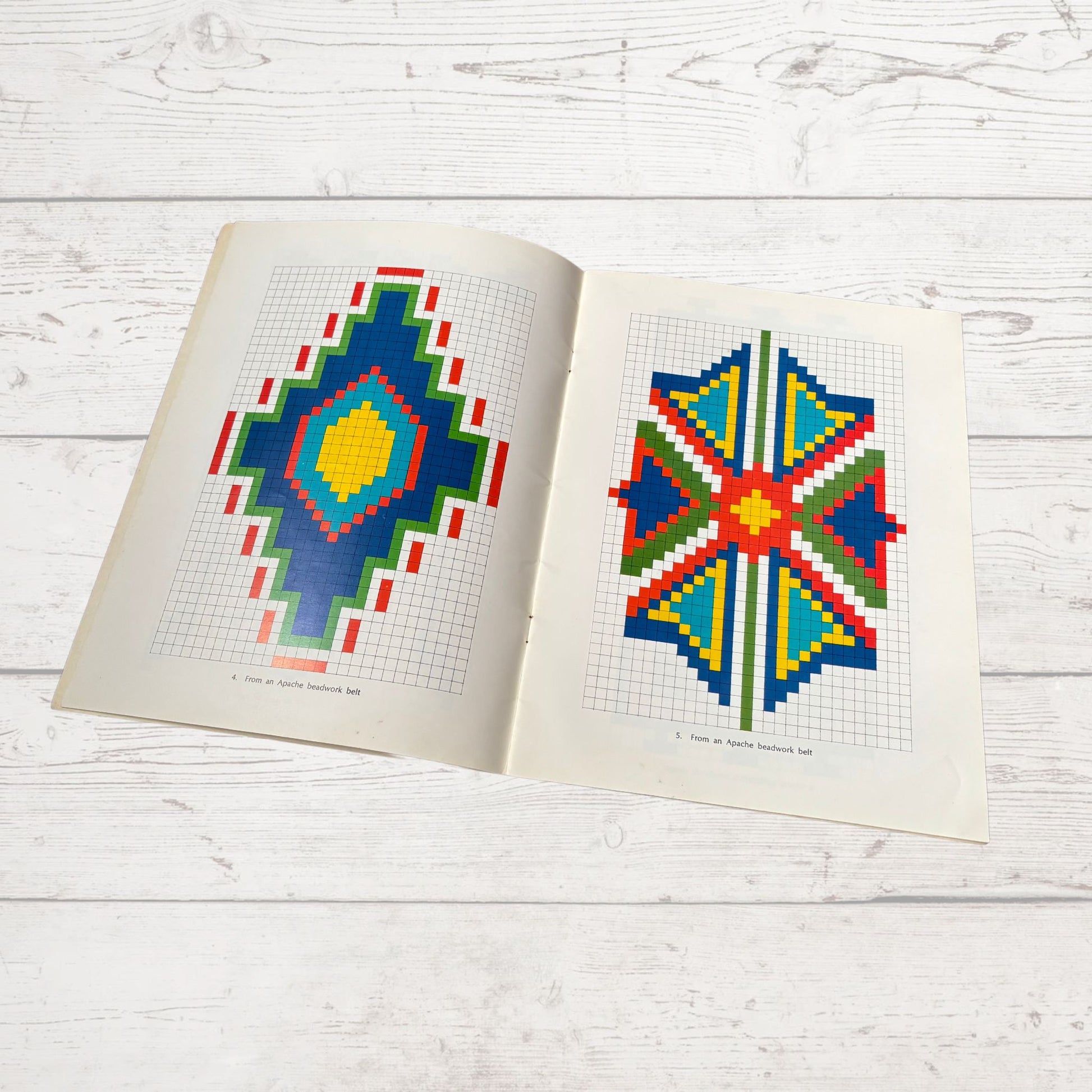 This fantastic 1970s book is full of needlepoint designs adapted from authentic Native American motifs to create colourful rug designs This vintage pattern book features 32 charted designs ready to use on #5 rug canvas.