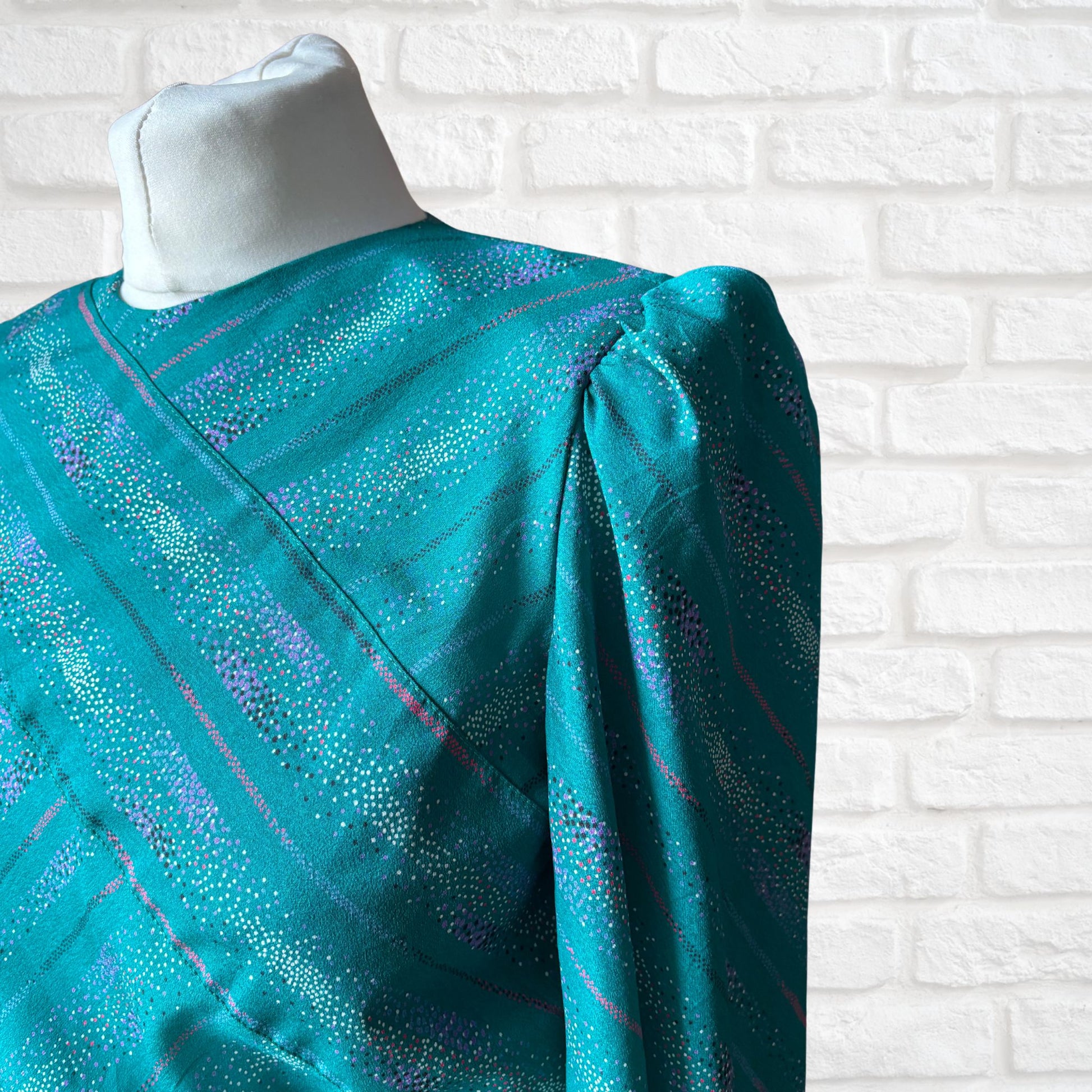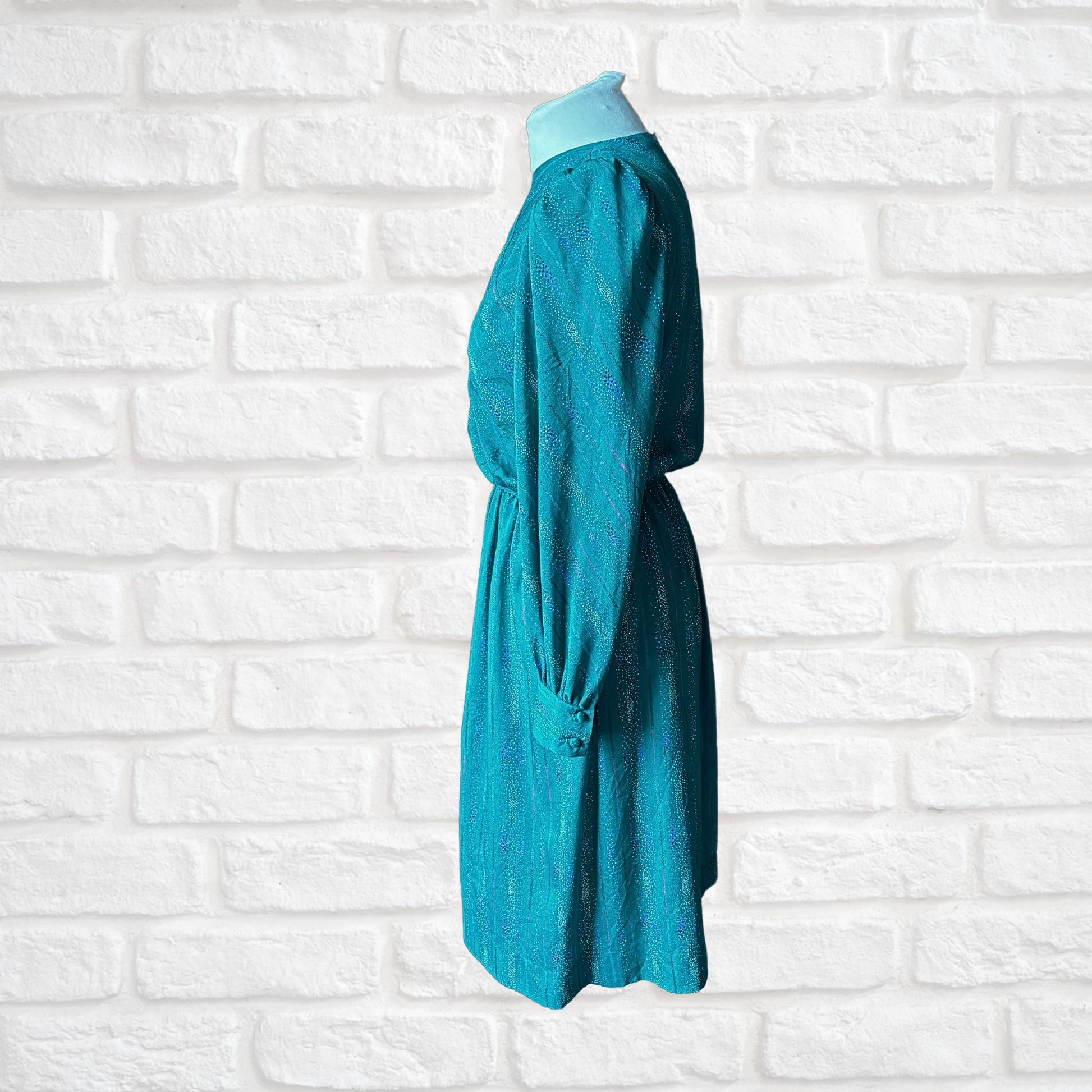Green Polka Dot 70s Vintage Dress with Long Sleeves by Leslie Fay. Approx U.K. size 10-12