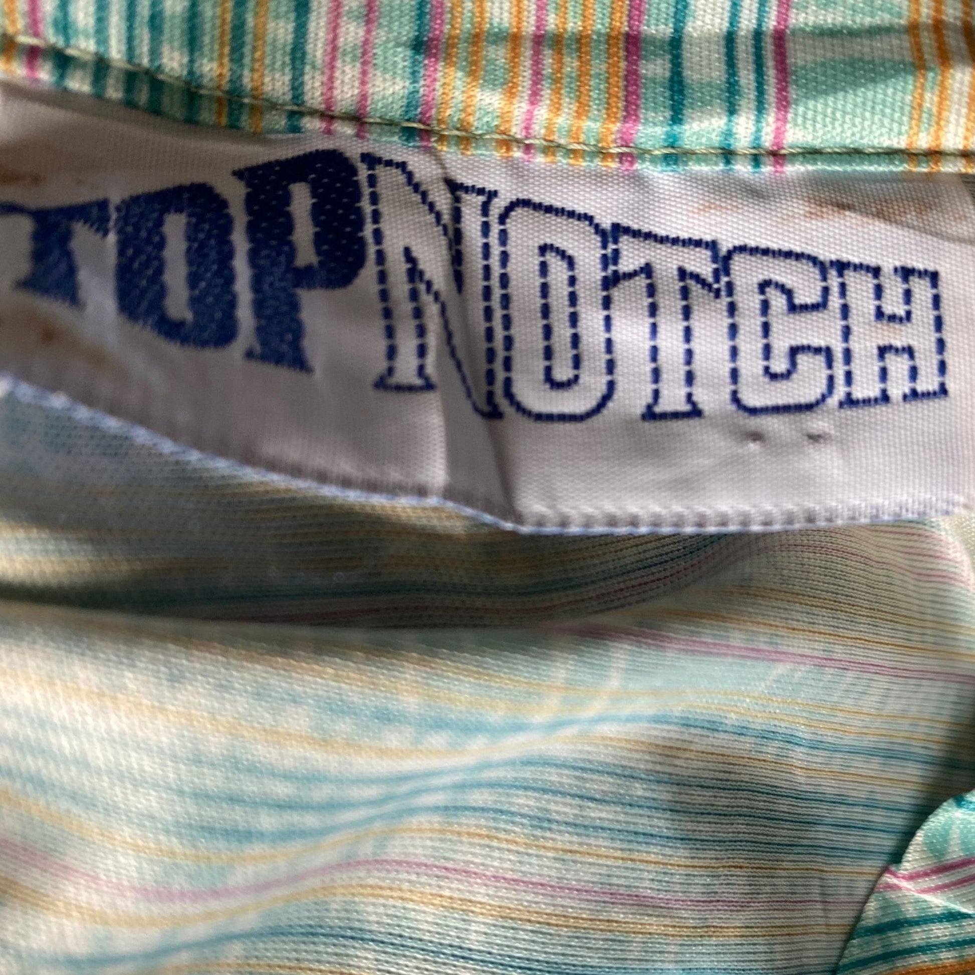 - Vintage green, yellow, and pink striped partially buttoned -down top