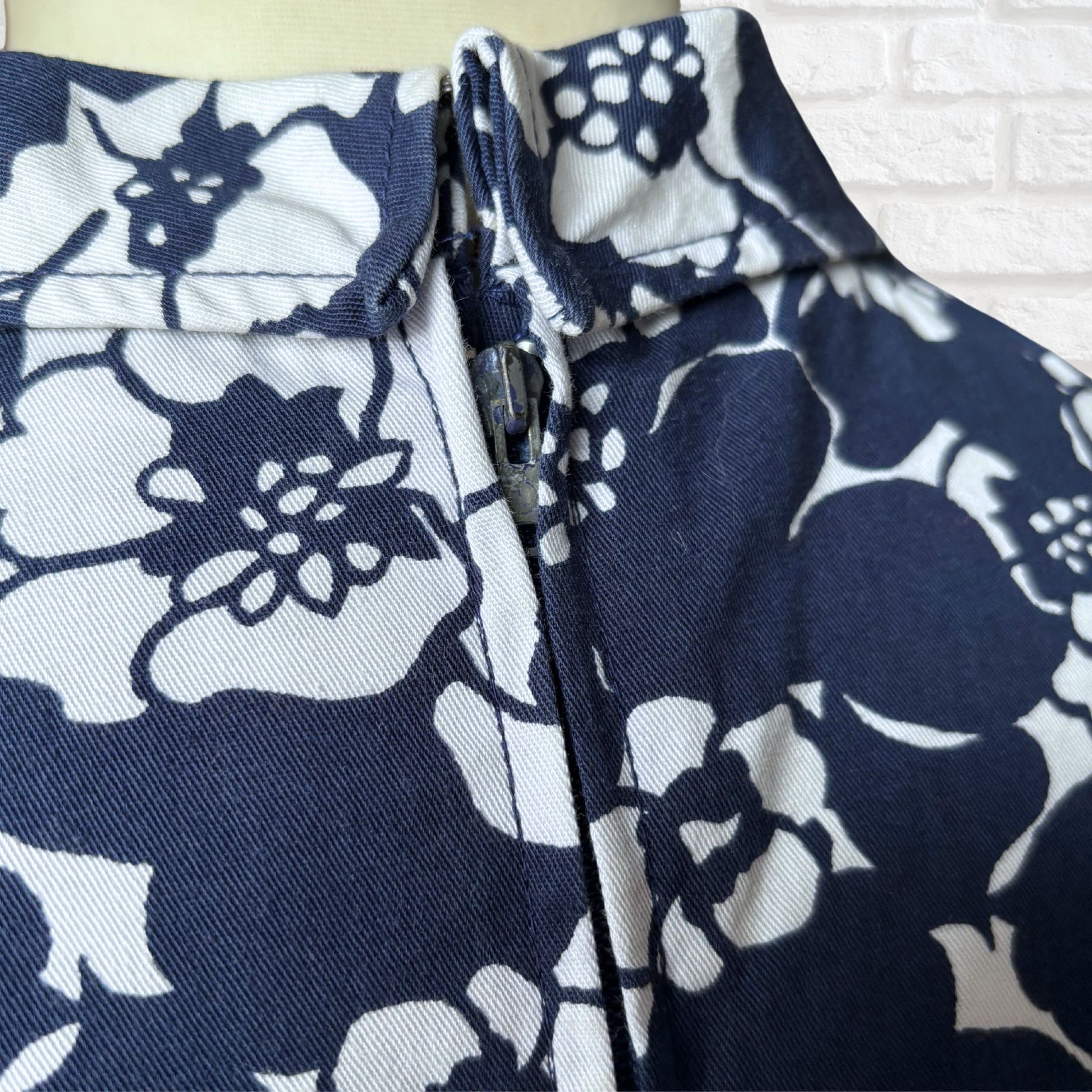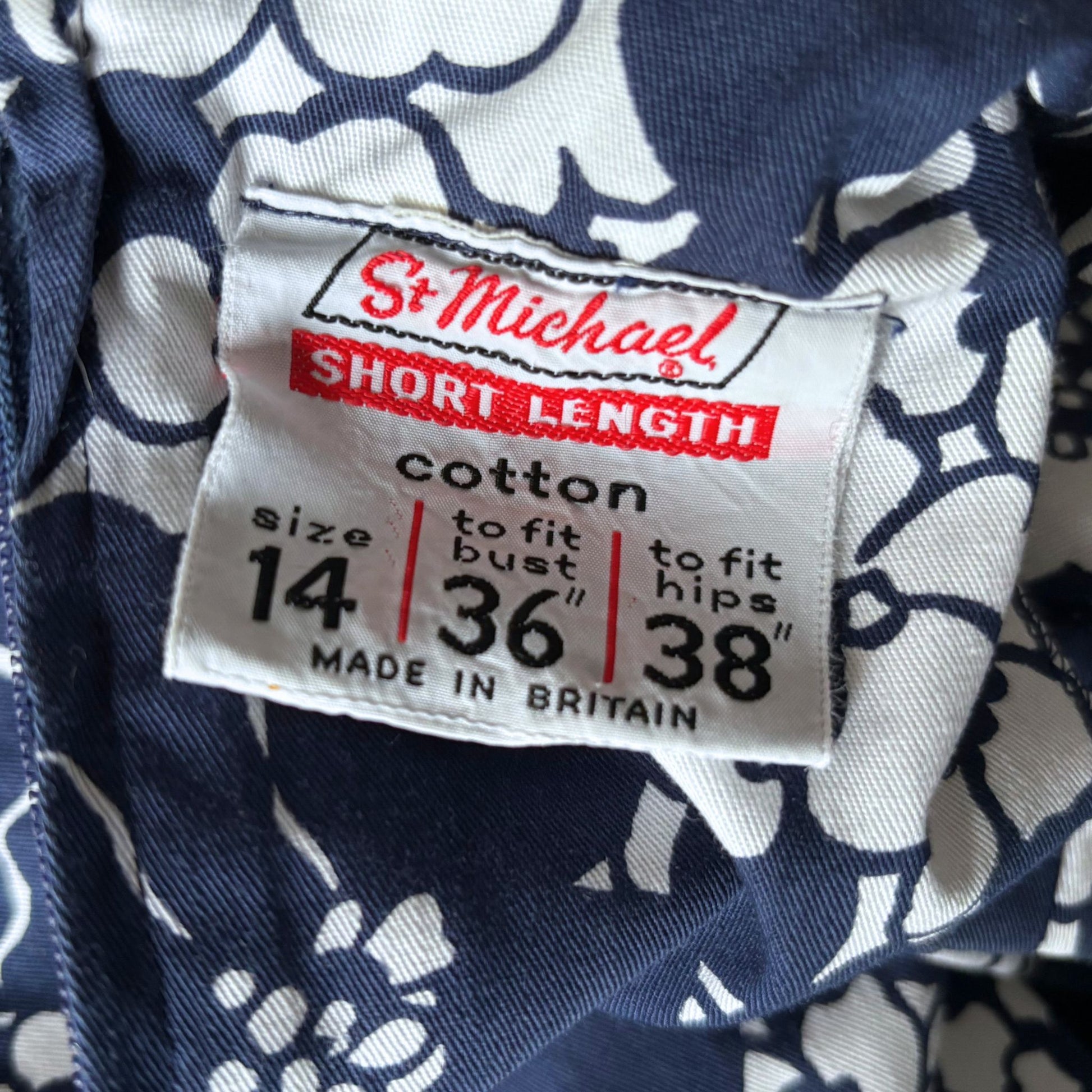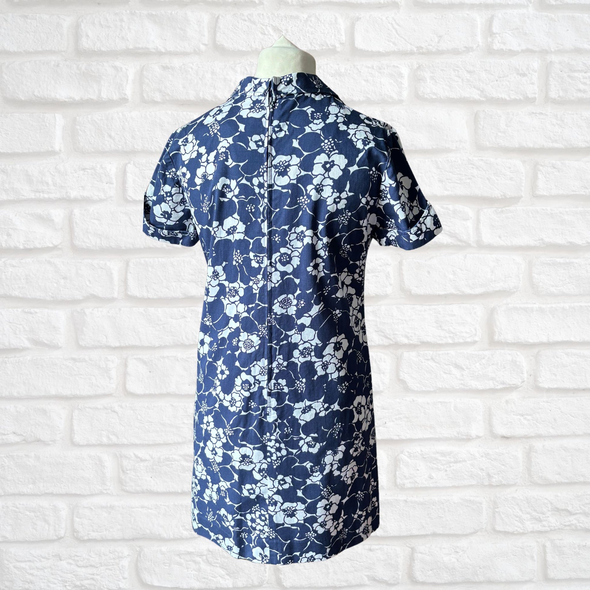 Navy Blue and White Floral Cotton 60s Mini Dress by St. Michael. Approx UK size 10- 12