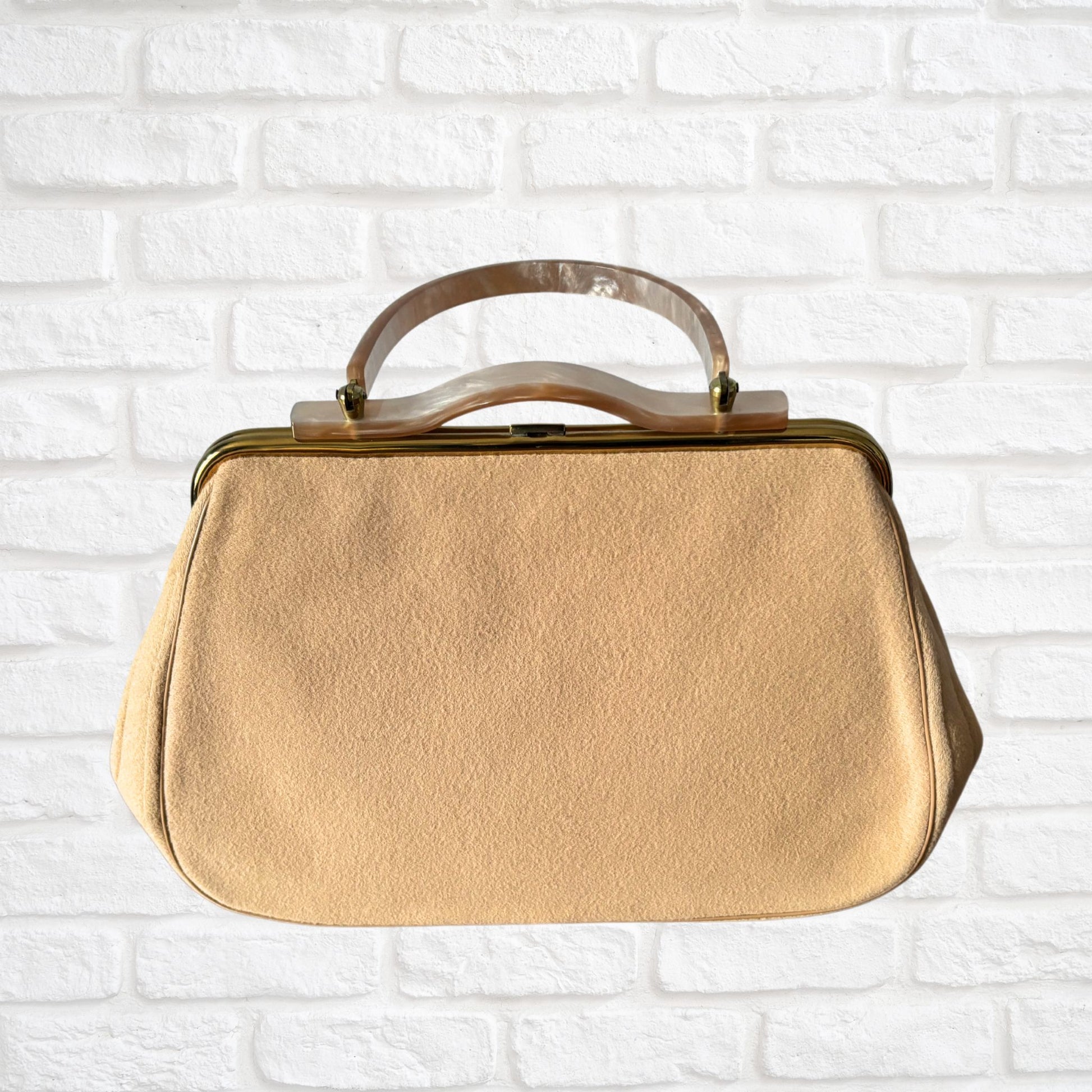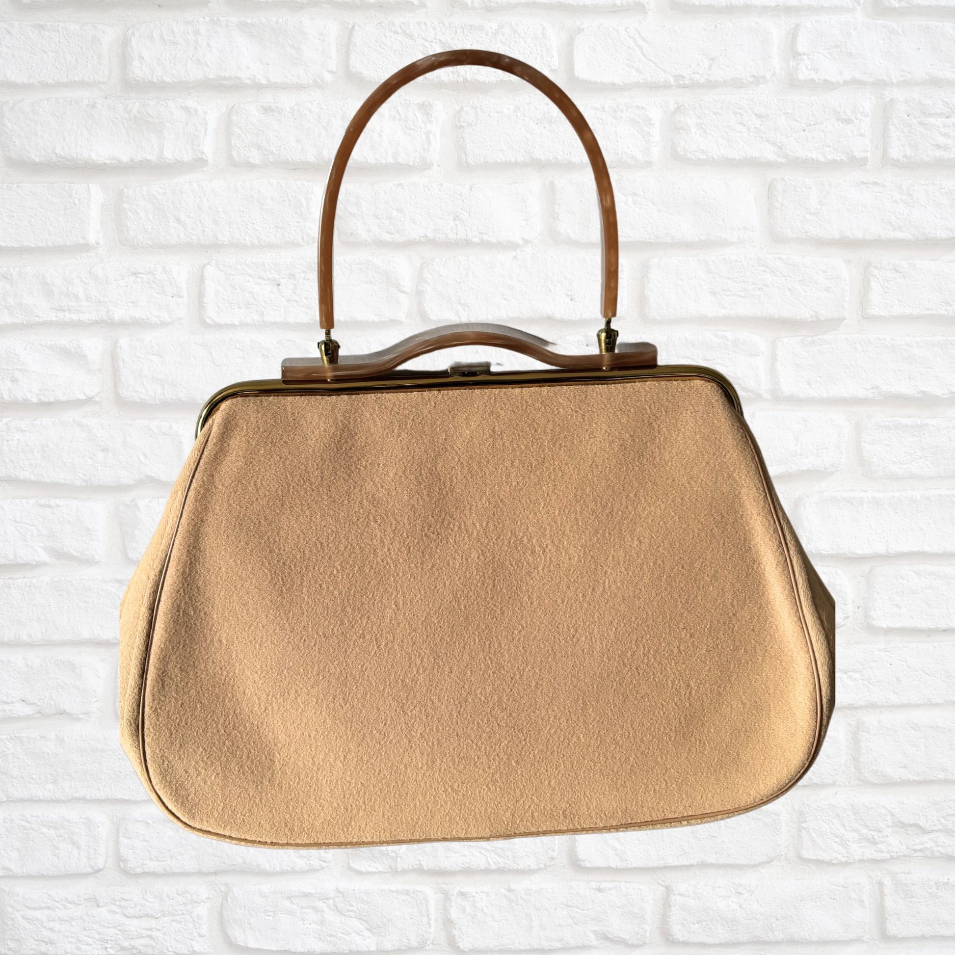 Vintage 1950s Tan Wool Felt Handbag with Lucite Handle - Charles S Kahn Inc, Florida