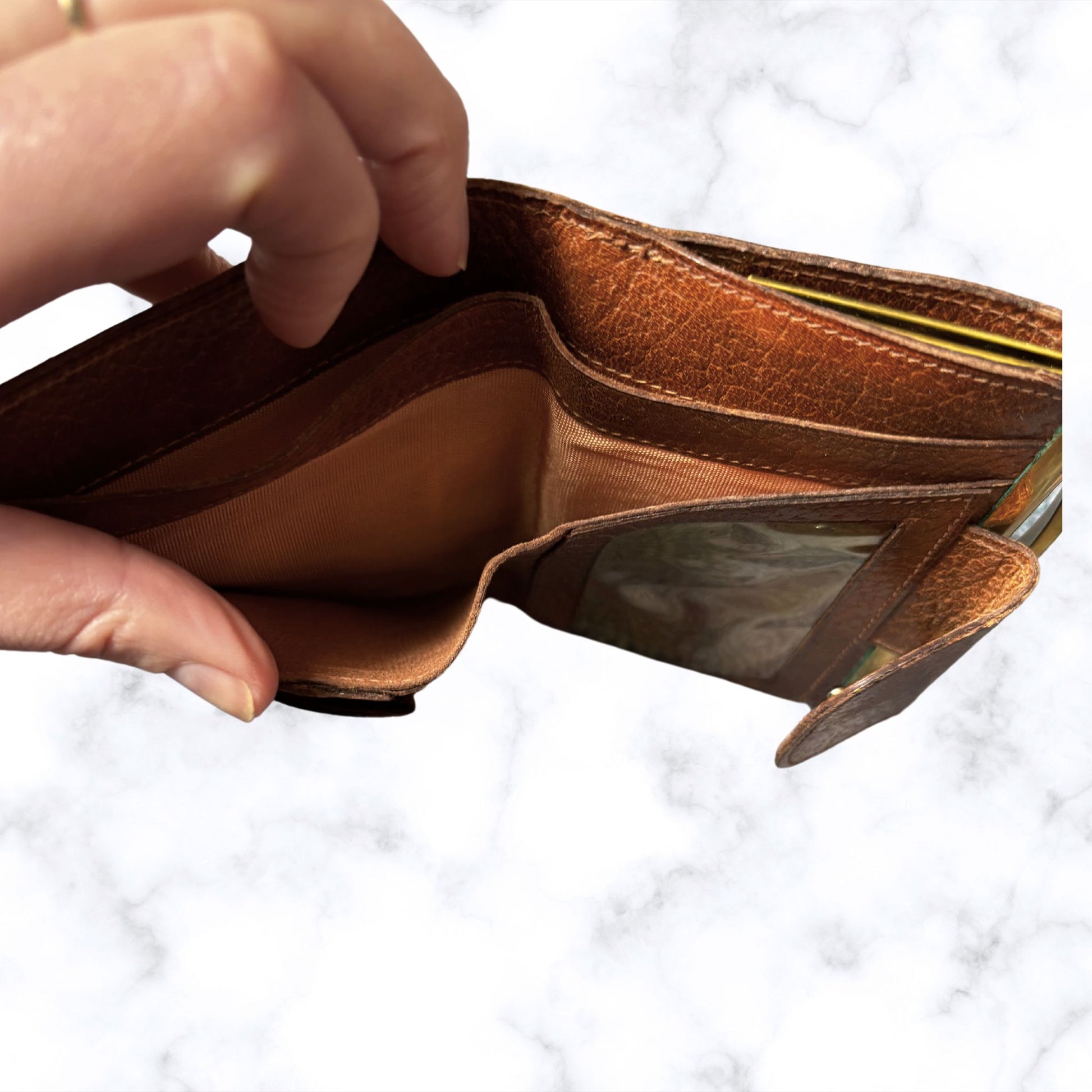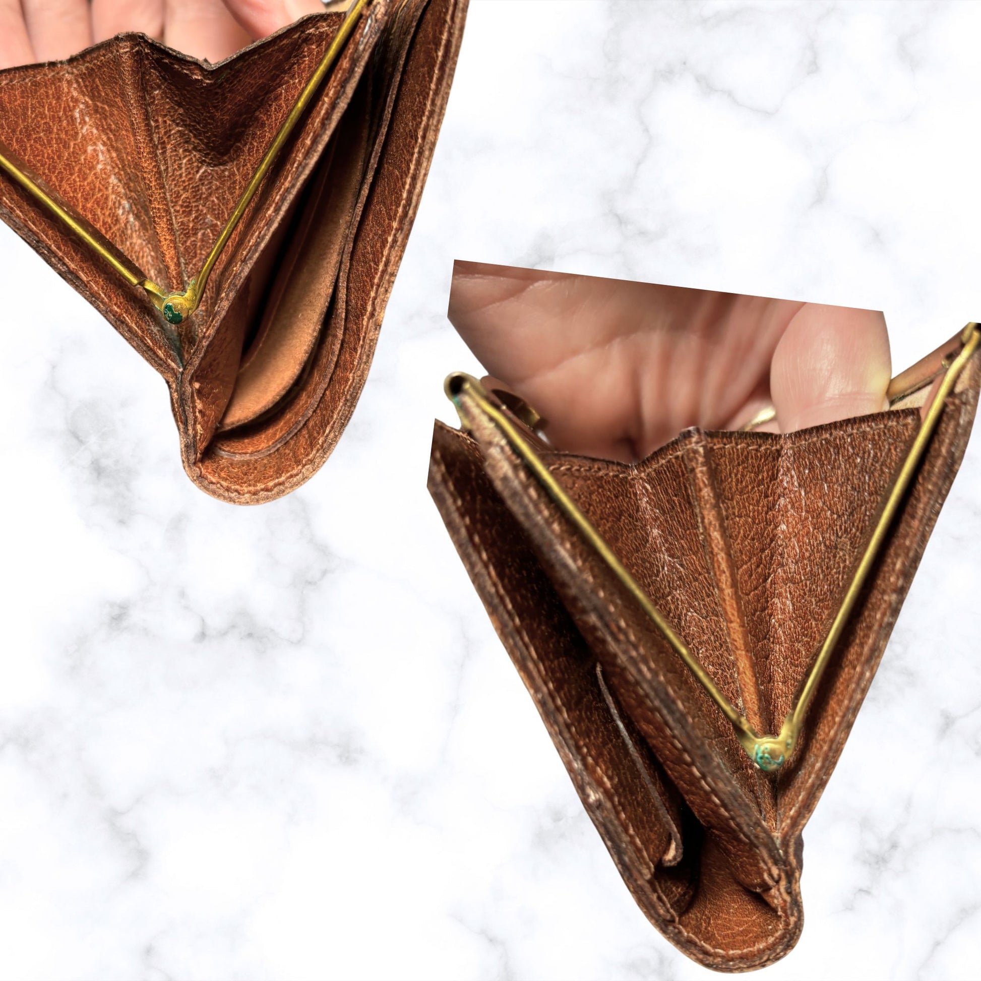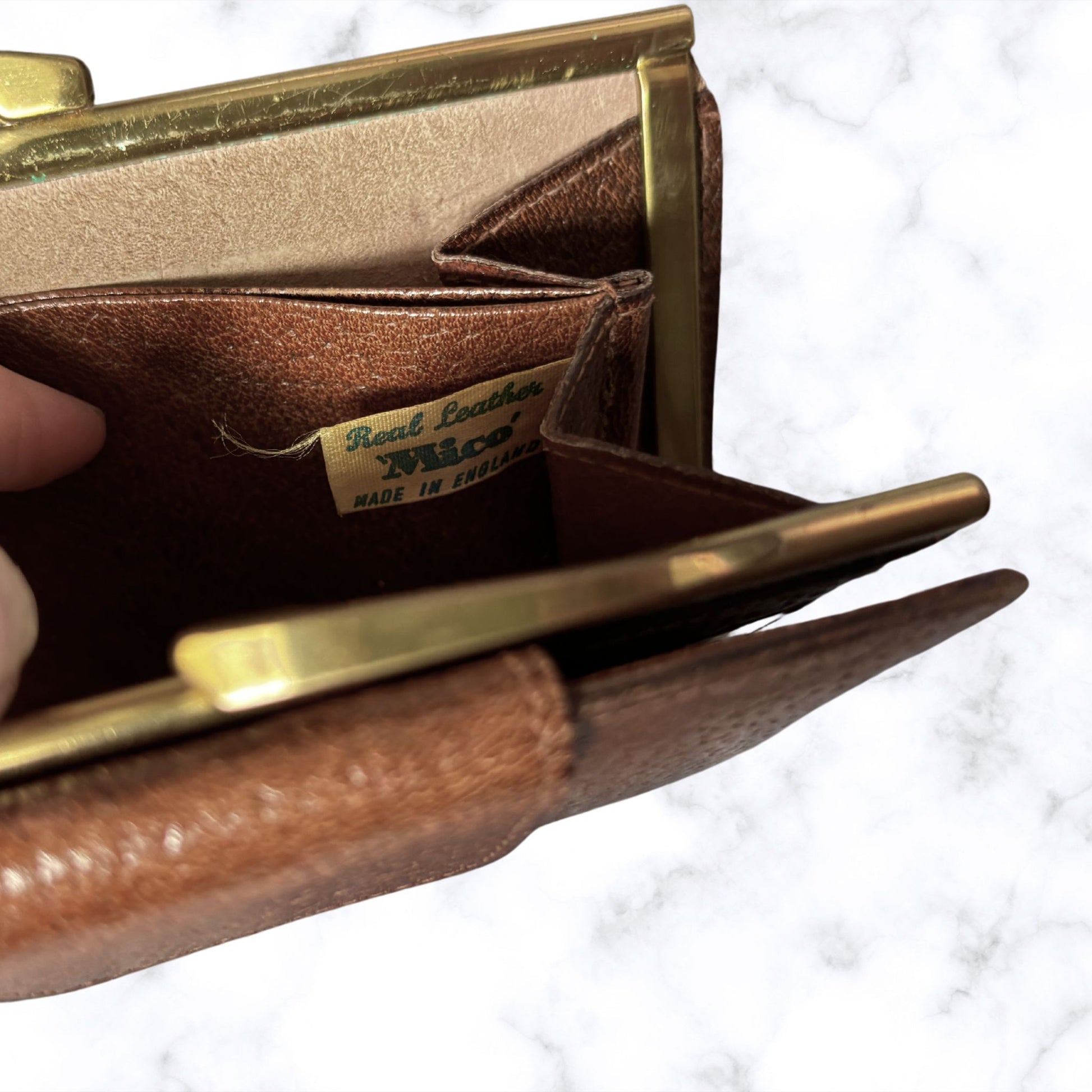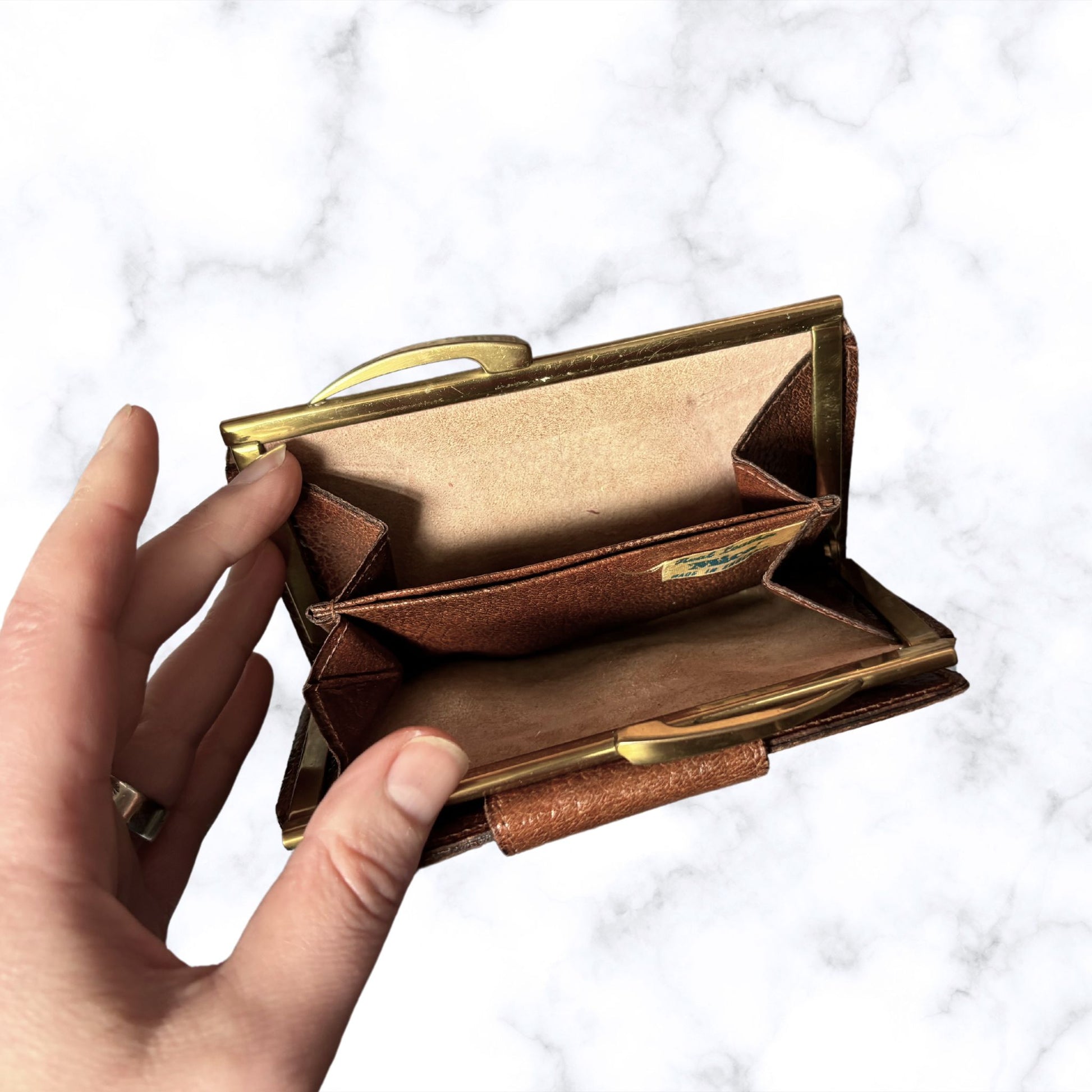 Vintage 1960s Brown Leather Clasp Top Purse/Wallet - Elegant and Practical
