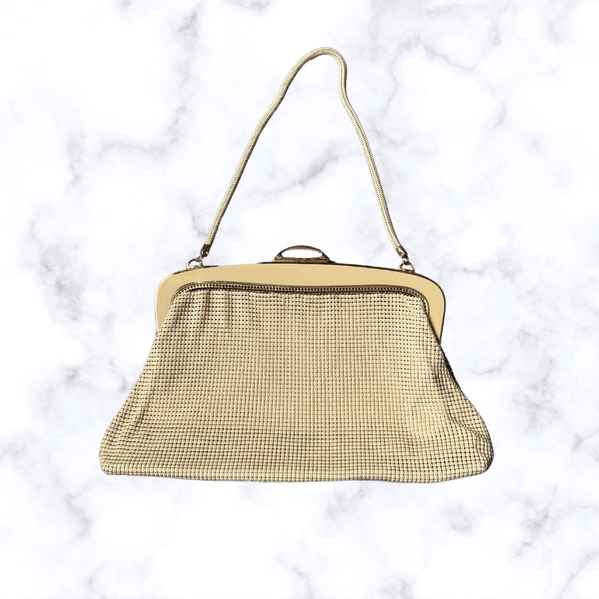 - Vintage 1960s Cream Glomesh Evening Bag