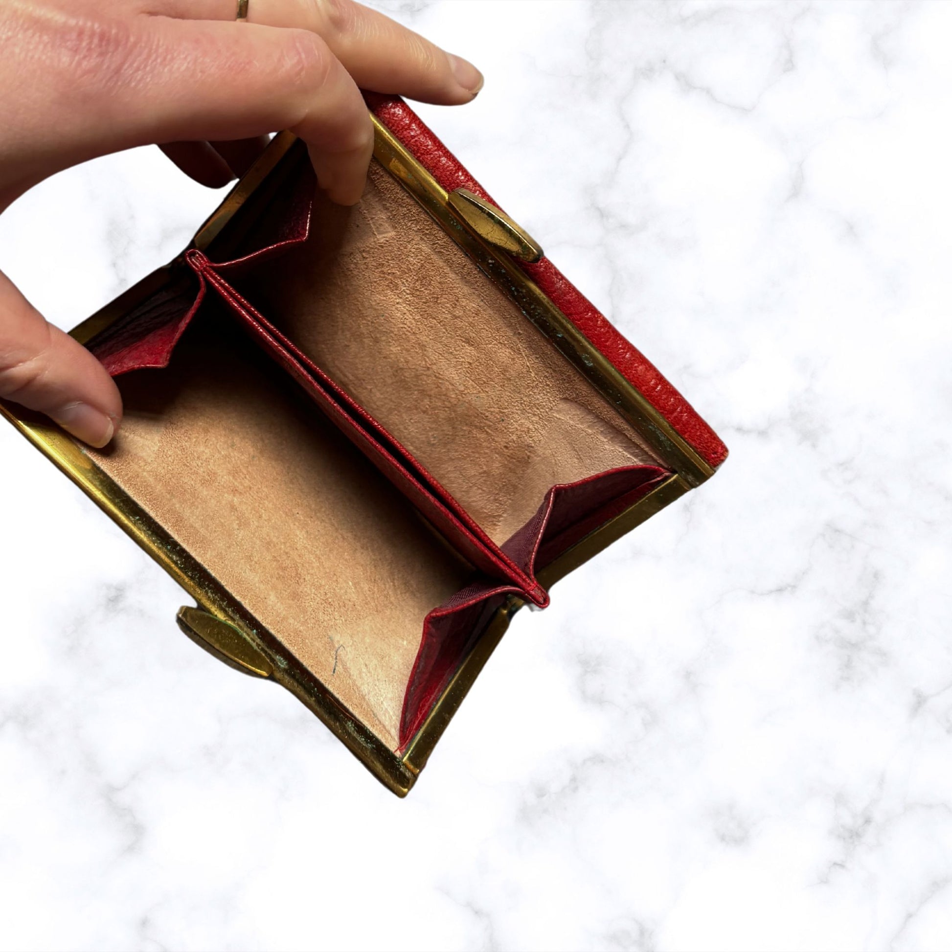 Vintage 1960s Textured Red Leather Clasp Top Purse/Wallet - Stylish and Practical