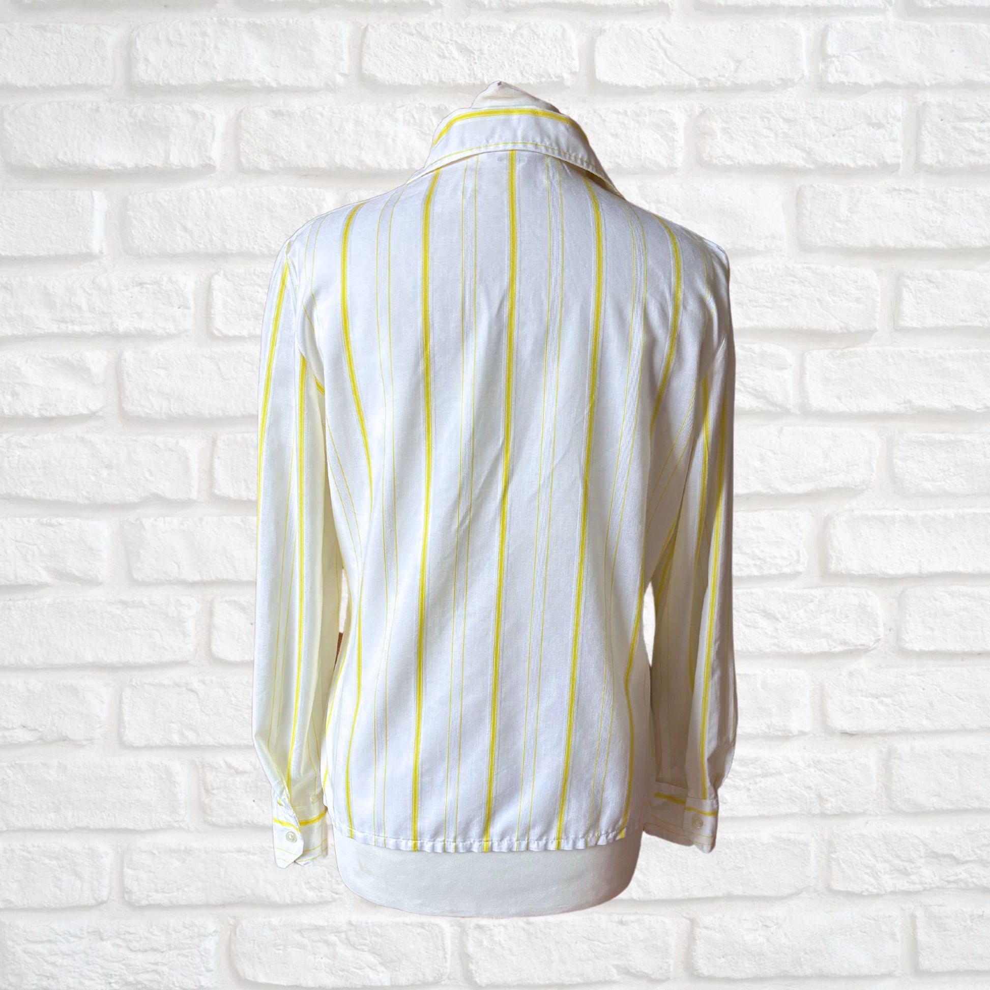Vintage 1970s White Cotton Blend Shirt With Yellow Stripes . Approx UK size 10-12