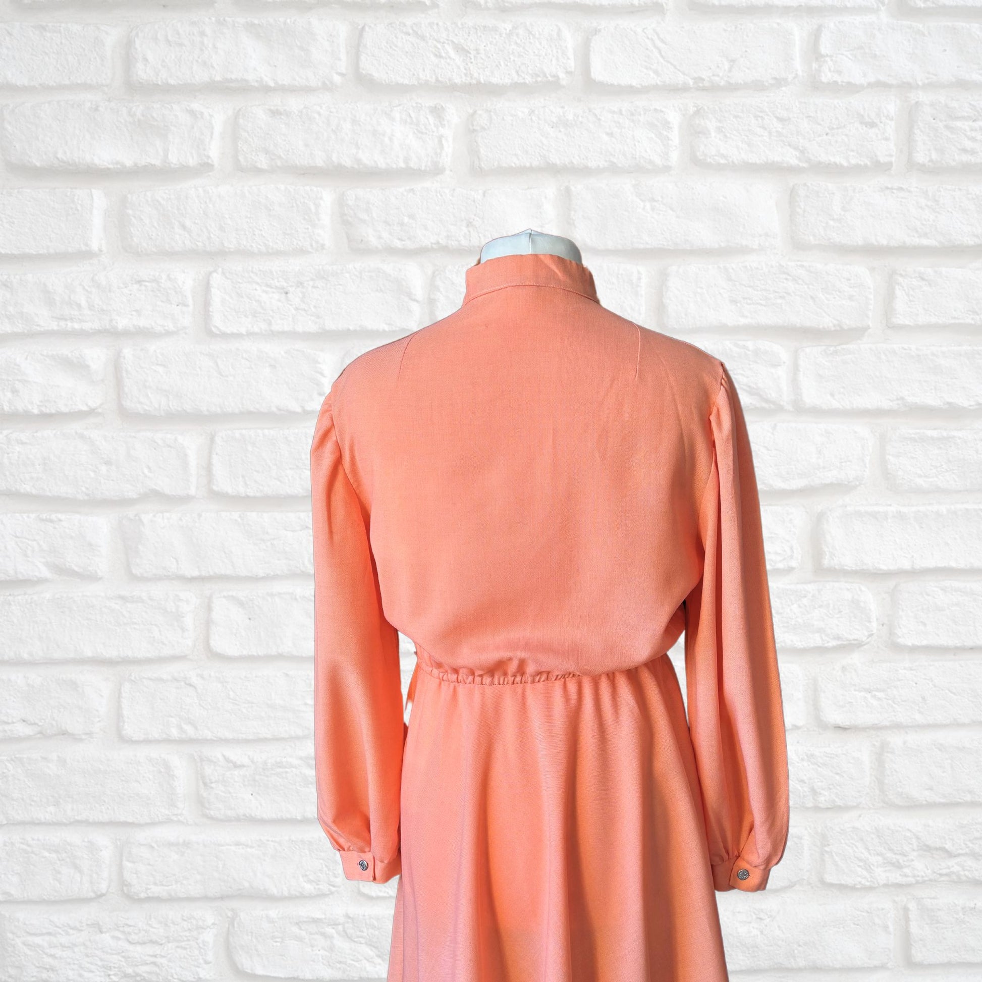 Vintage 1980s Peach Fit and Flare Dress. Approx UK Size 14-16