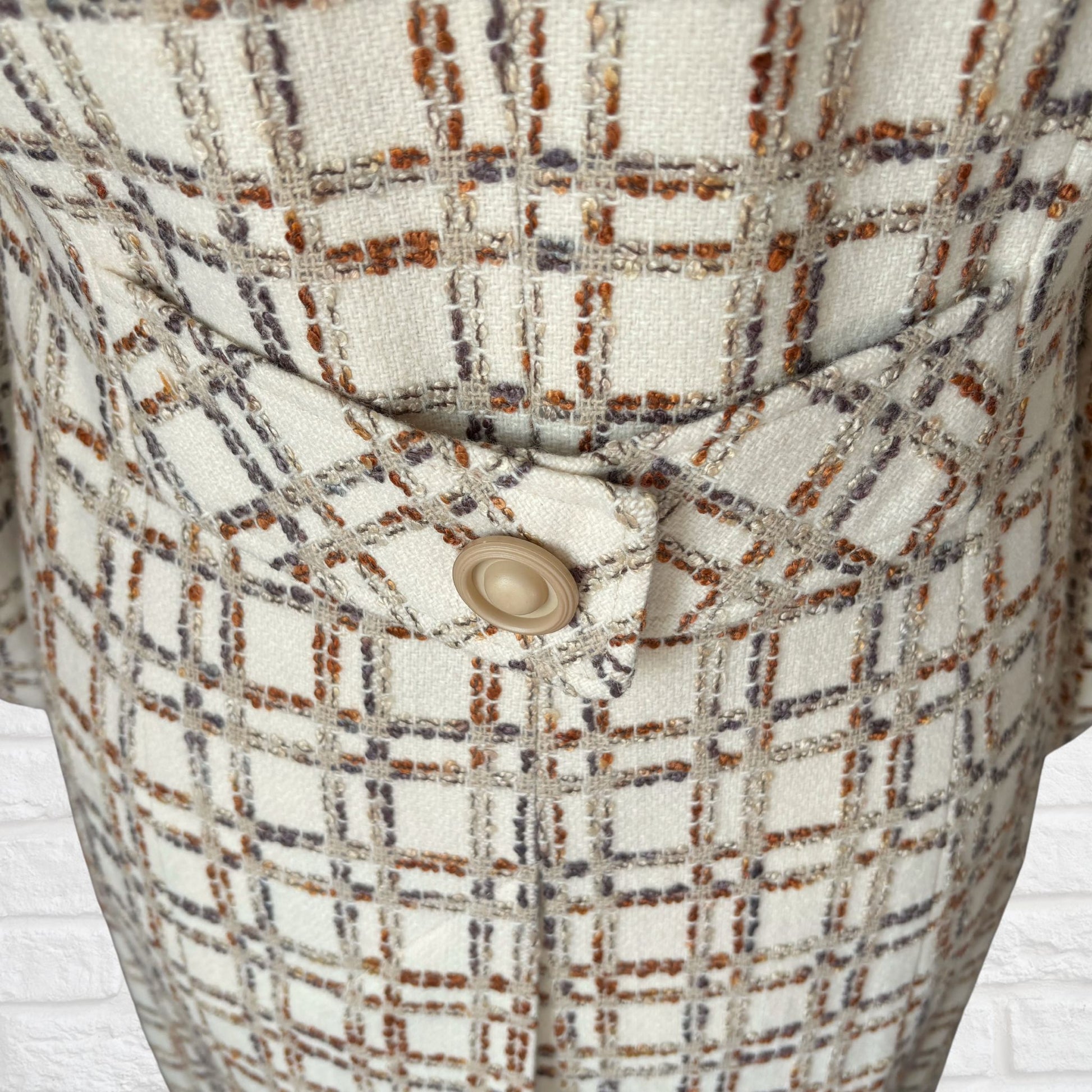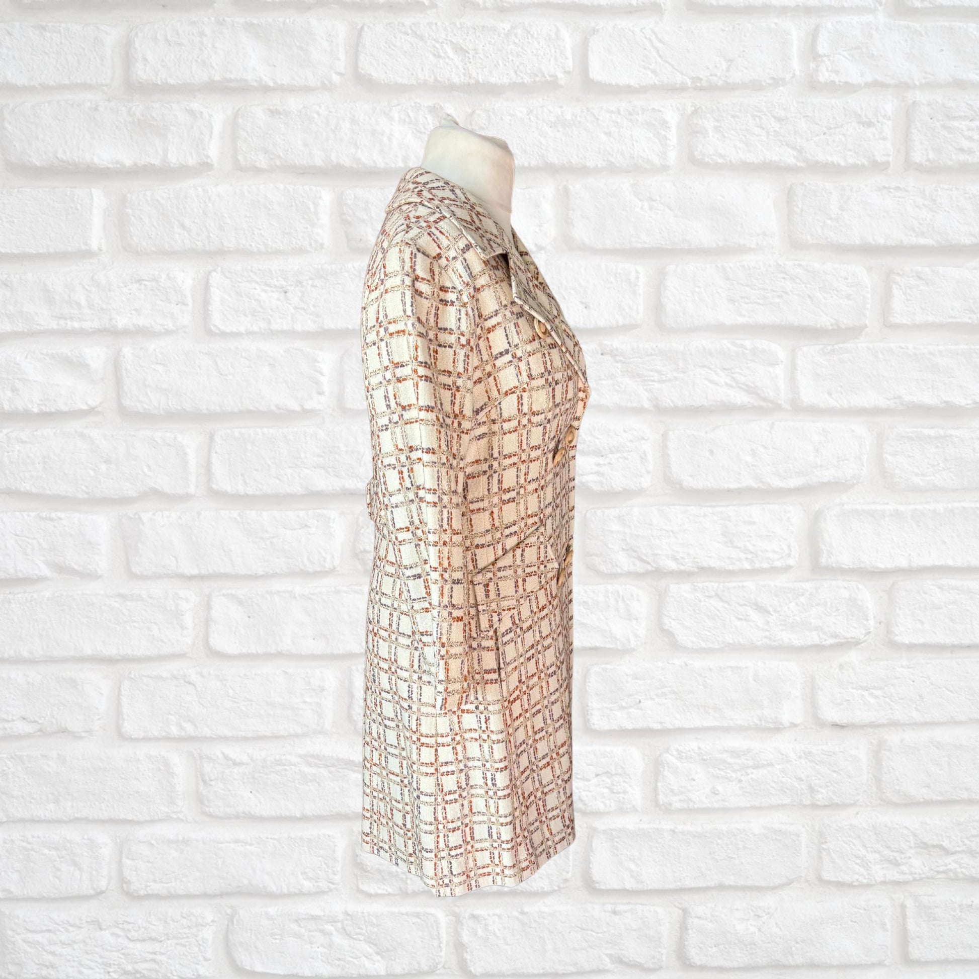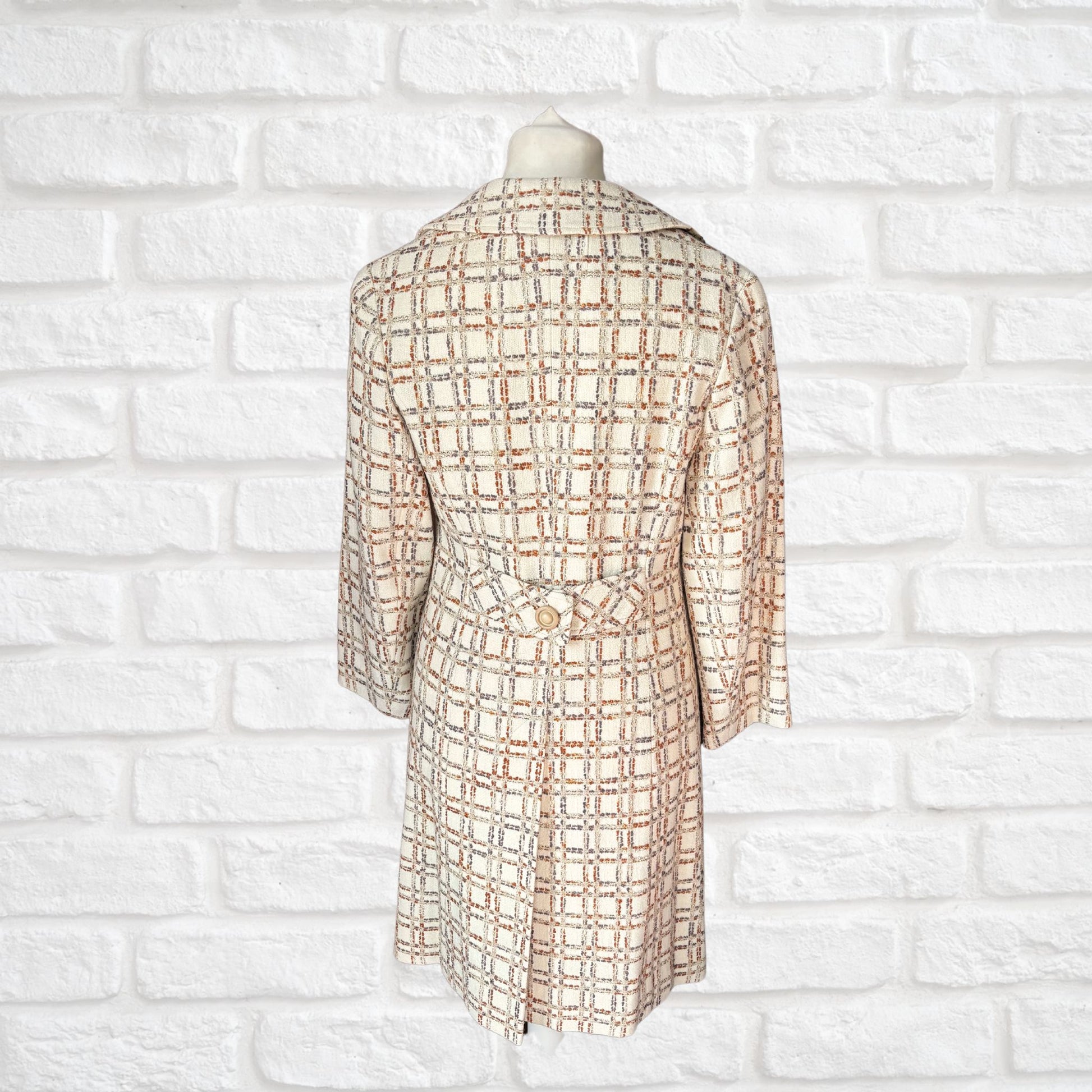 Vintage 60s/70s Cream and Copper Wool Blend Checked Vintage Coat Approx UK size 12-14