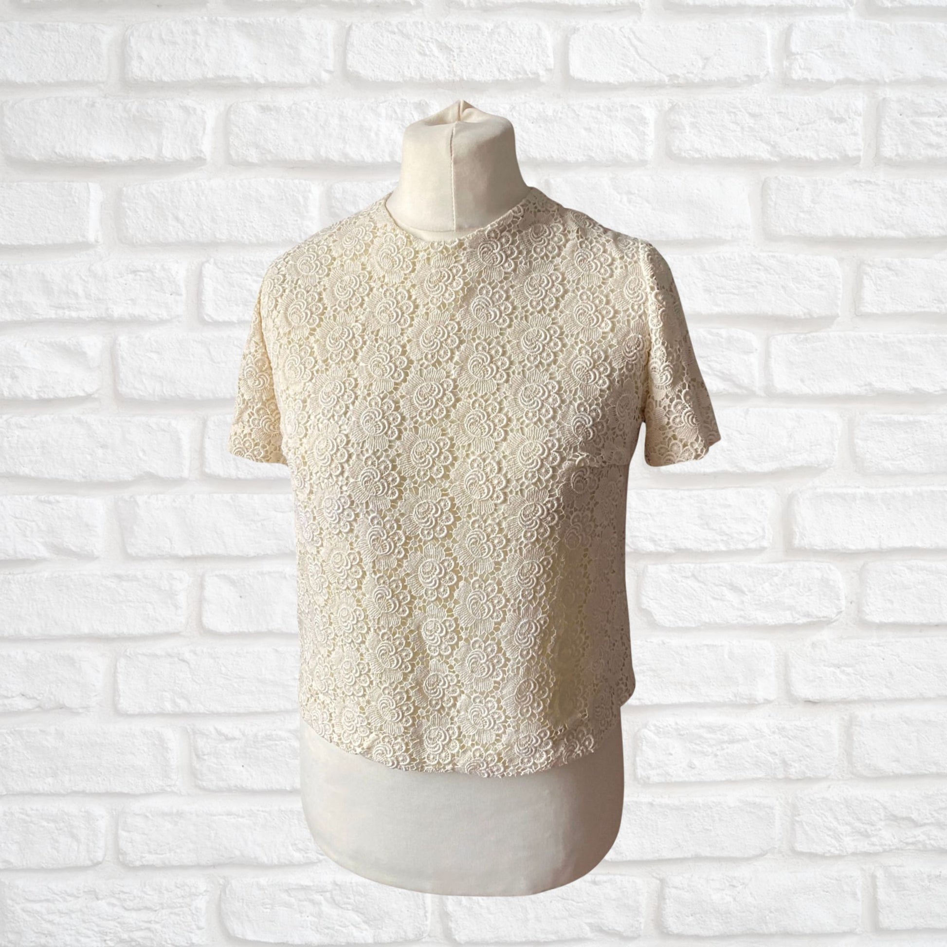 Vintage 60s Cream Floral Lace Short Sleeved Top. Approx UK size 10-12