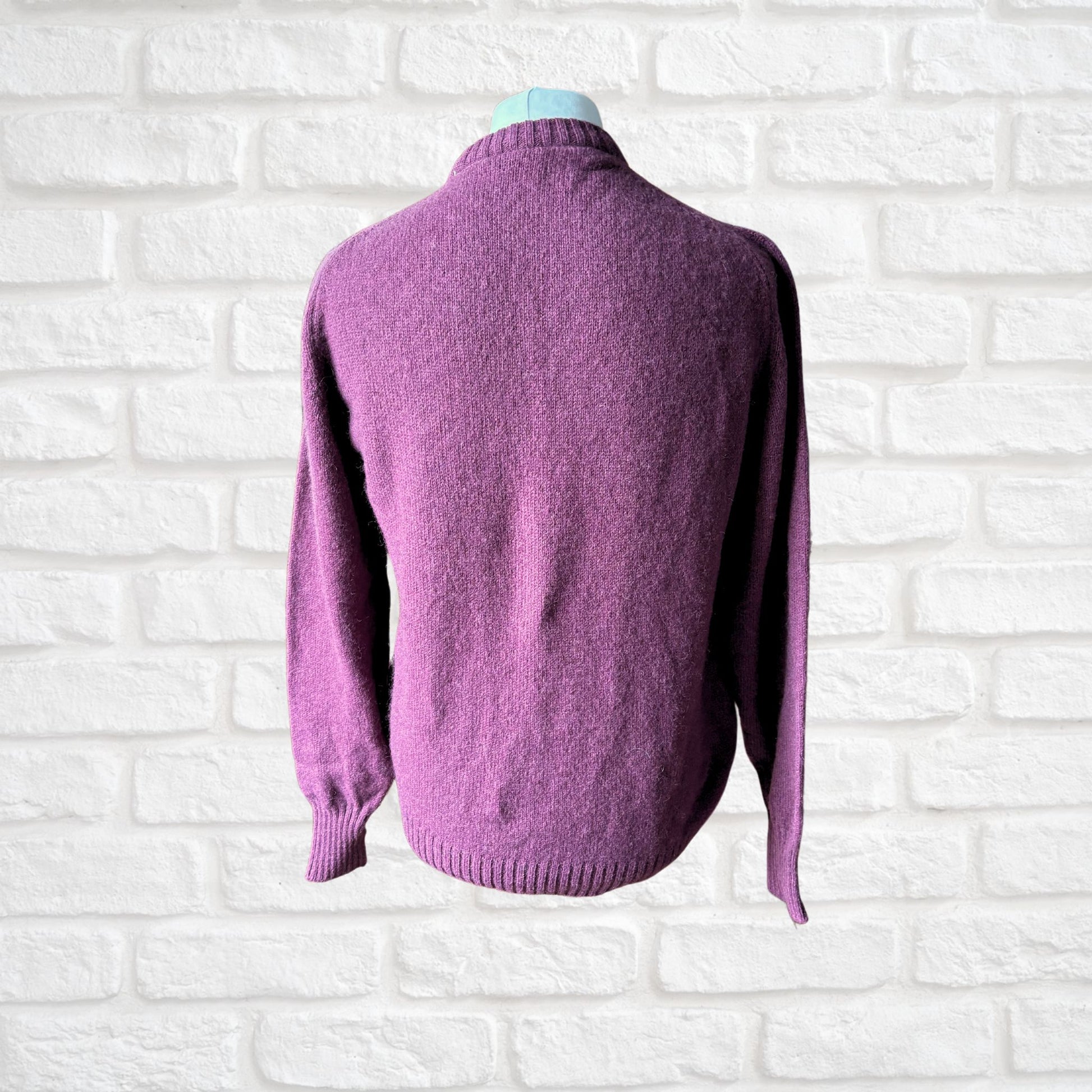 This cosy plum coloured wool blend jumper is a classic St. Michael knit. Originally created as menswear but perfect for everyone, this quality 70s sweater is an Autumn/Winter wardrobe staple. Wear over a shirt or t- shirt for a smart, layered look that’s perfect for cosy weekend outings or relaxing by the fire.