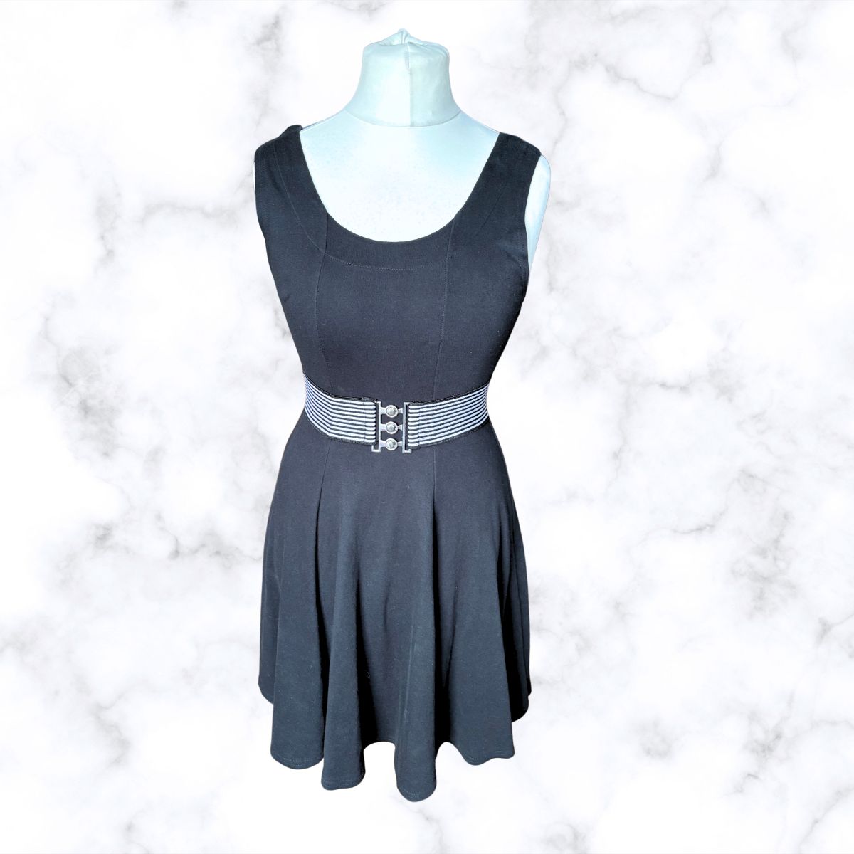 A 1980s fashion essential, this stylish black and off white wide elastic belt fastens with a classic 3 point silver metal clasp is perfect for emphasising your waist.
