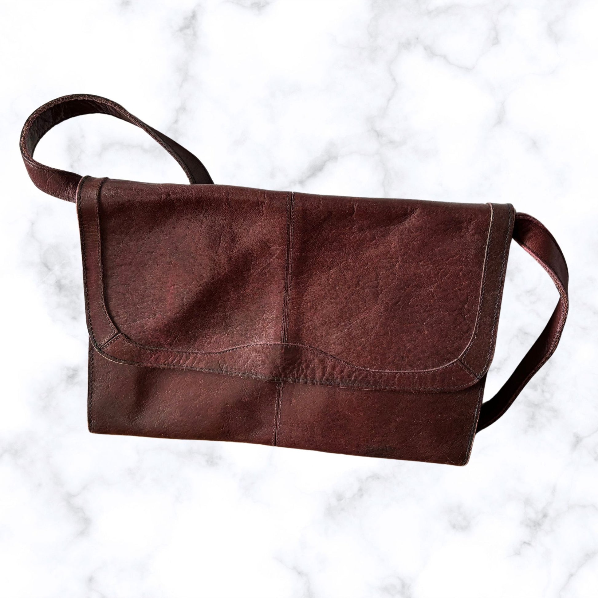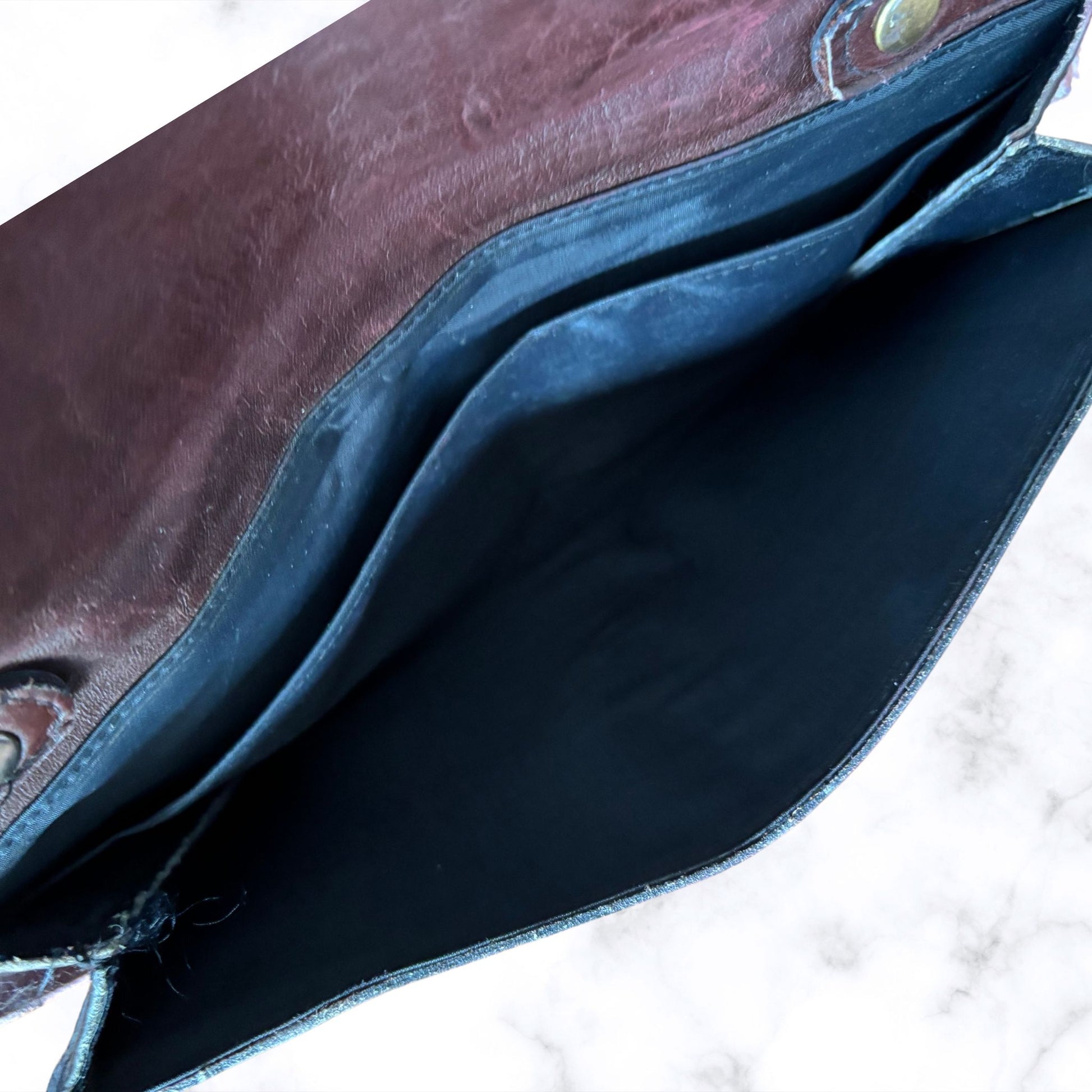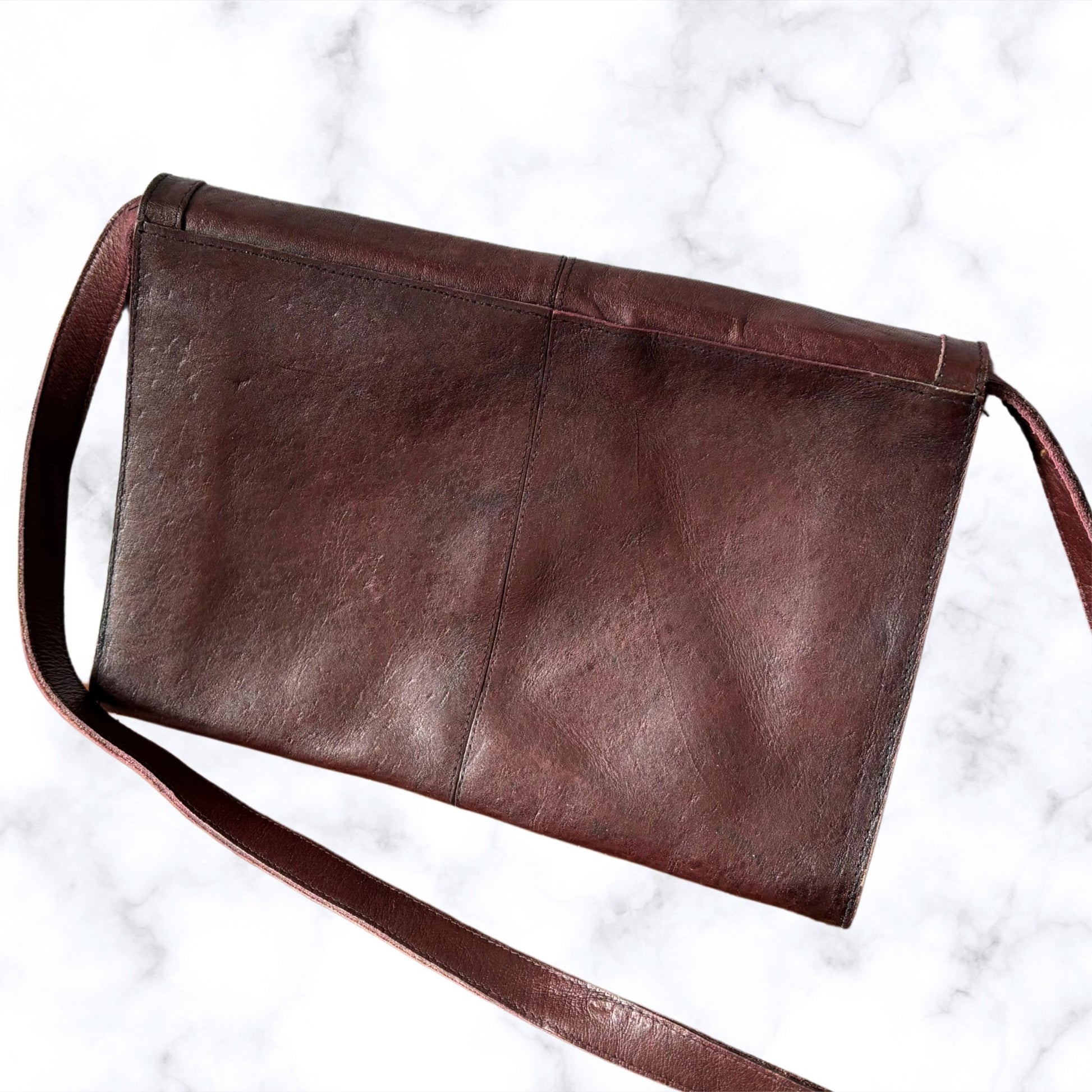 Vintage 80s Burgundy Brown Envelope Bag with Detachable Cross Body Strap