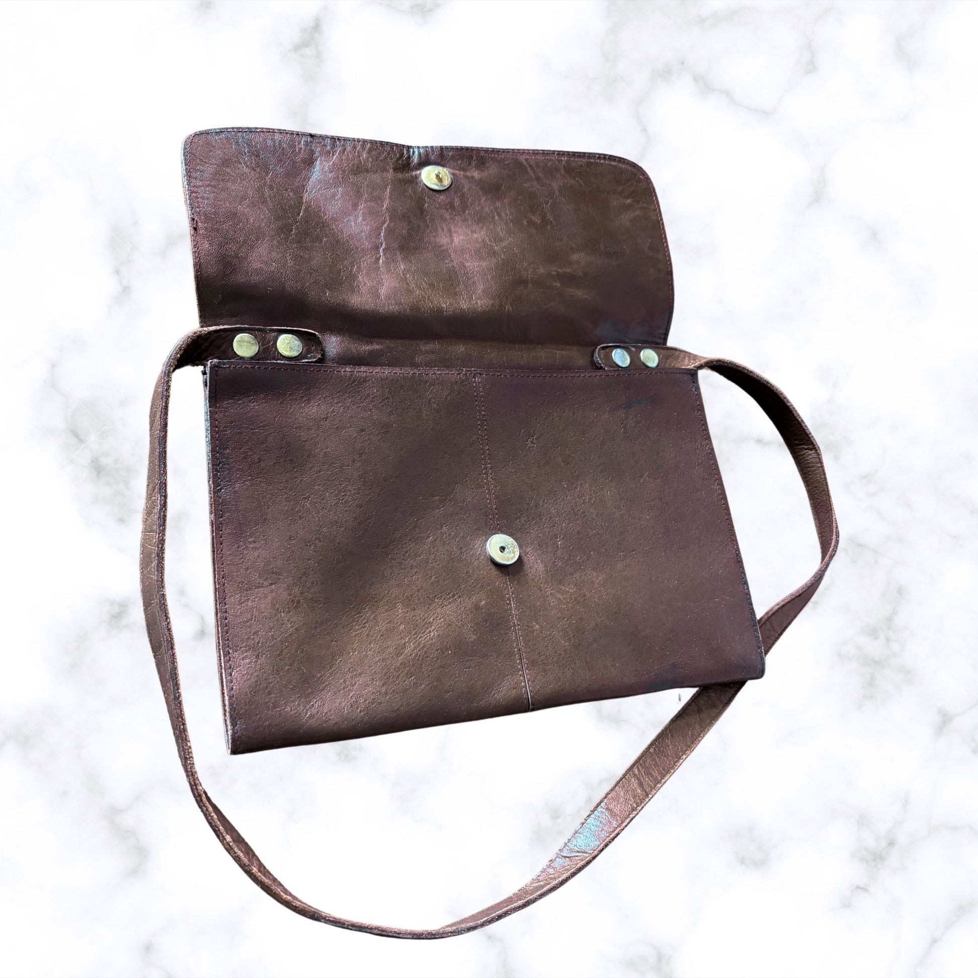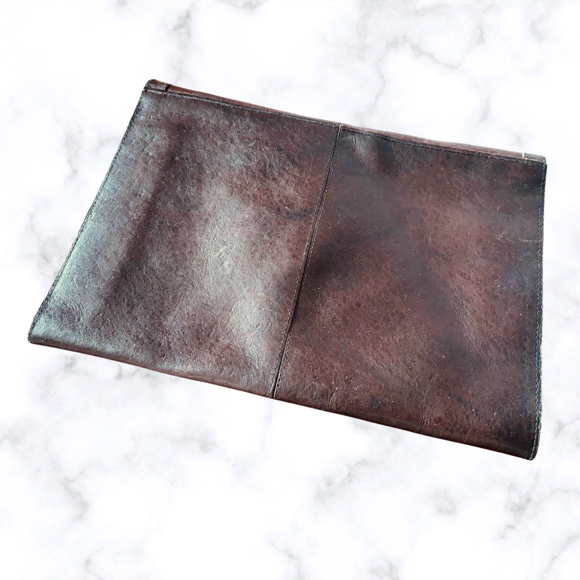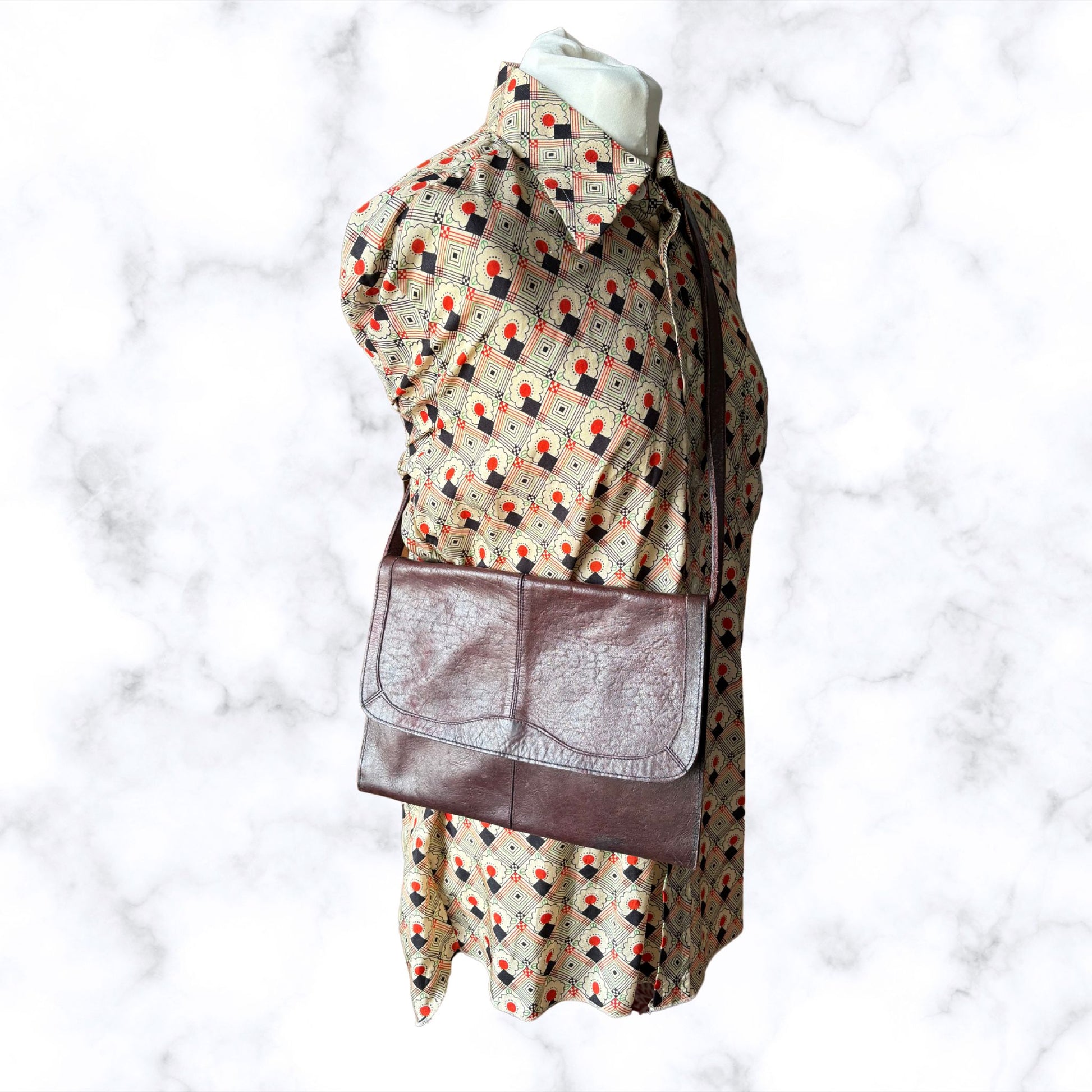 Vintage 80s Burgundy Brown Envelope Bag with Detachable Cross Body Strap