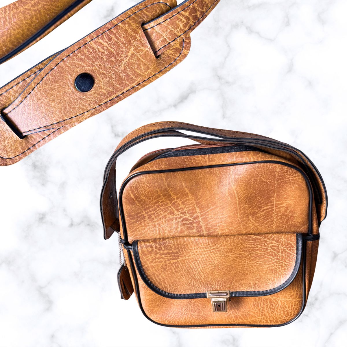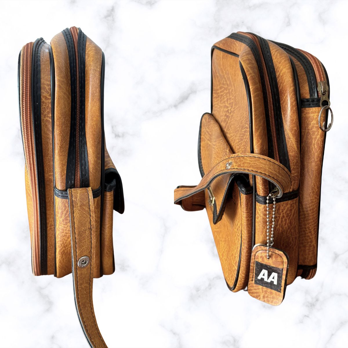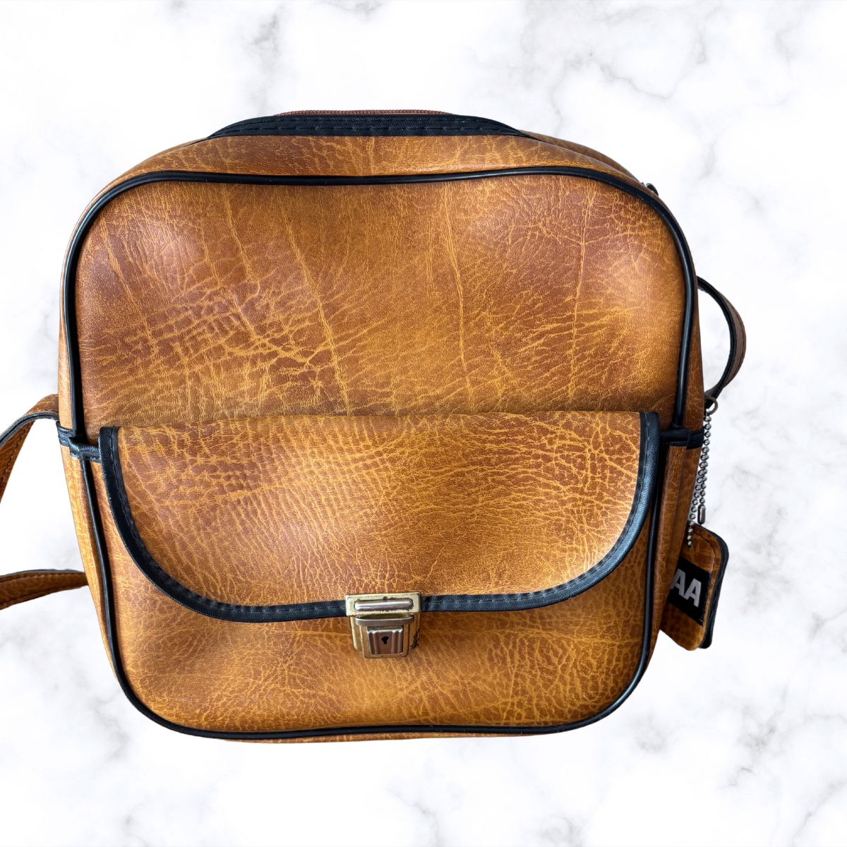 This classic 70s vinyl satchel, originally made for the AA ( Automobile Association) is perfect for travel with or without the car. It has many different sections and pockets to keep your belongs safe and secure making it an ideal cabin bag. It is perfect for days out exploring or even as an overnight bag