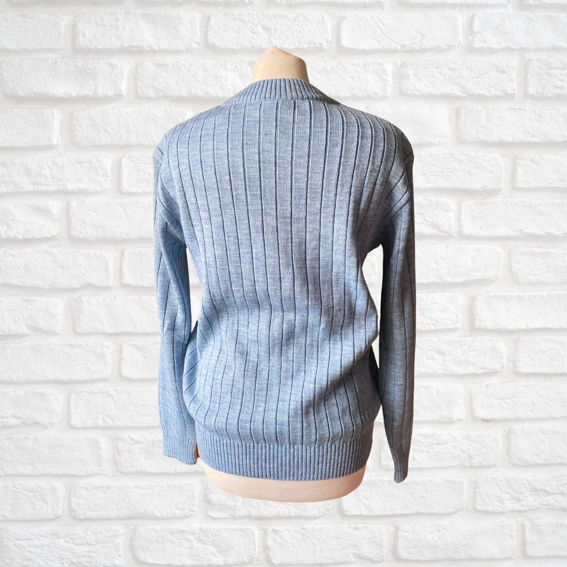 Vintage blue ribbed cable knit crew neck sweater. Approx UK size 12-14(w) sml to med (m)