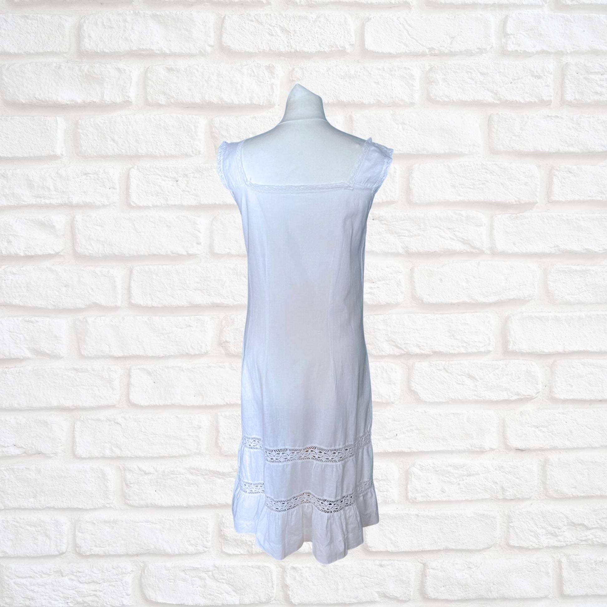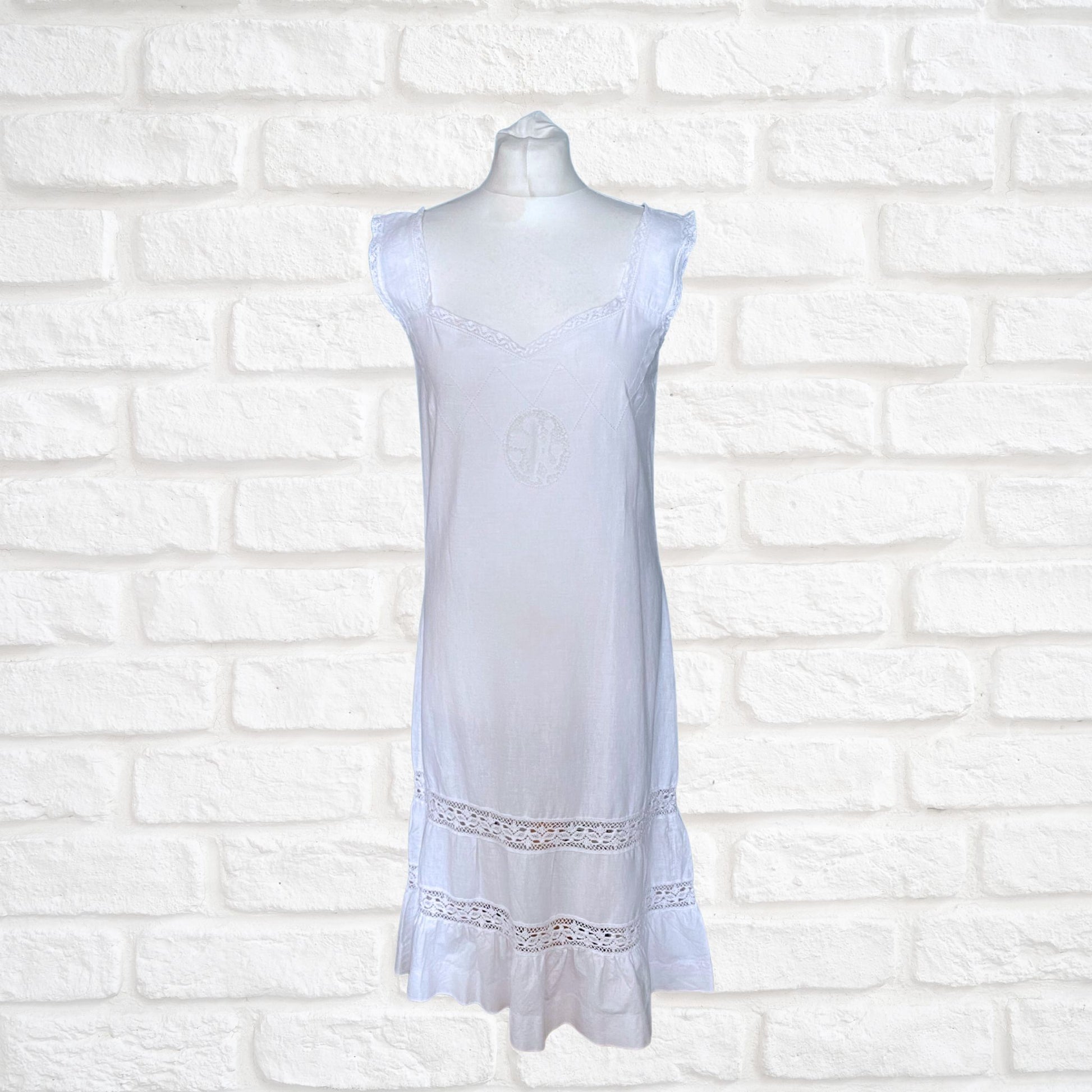 Vintage Edwardian Style White Linen Slip Dress with Lace Detailing. Approx UK size 8-10