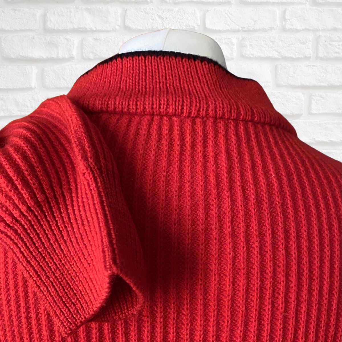 Lovely warm and cosy red ribbed vintage sweater. Great quality with handy side pockets. Made in Italy for the Danish sailing brand Elvström.