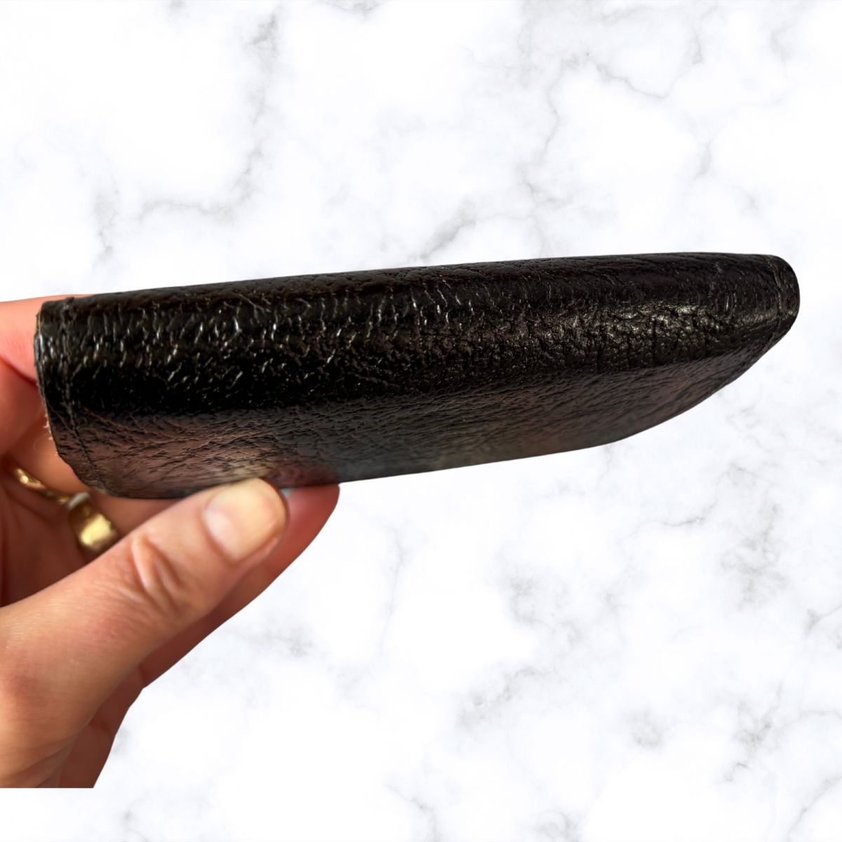 Vintage Textured Black Leather Clasp Top Purse/Wallet with Blue Tartan Insert - Stylish and Practical