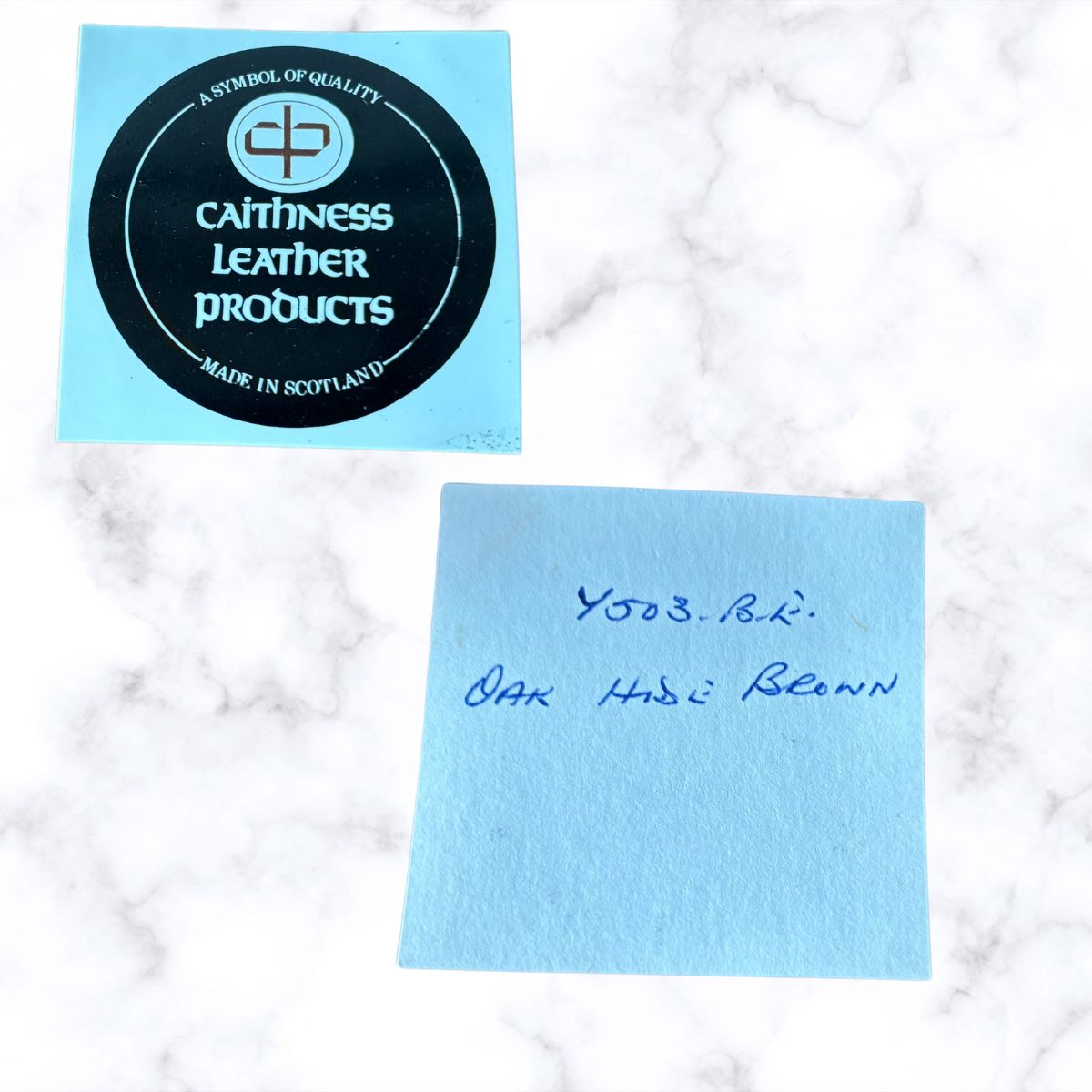 - Leather marked in gold lettering as real leather, Made in Scotland