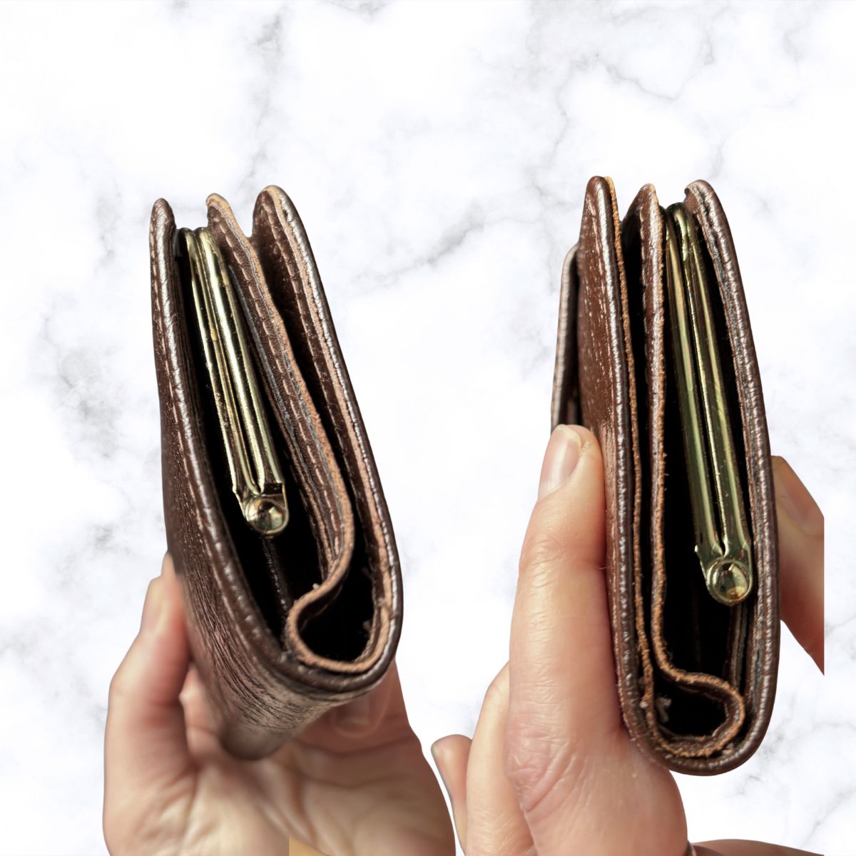 Vintage Textured Brown Leather Clasp Top Purse/Wallet - Stylish and Practical