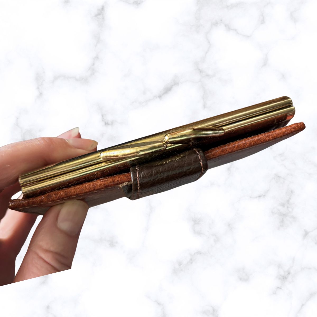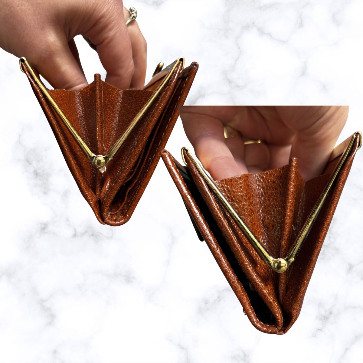 - Two tone brown leather coin purse/ wallet