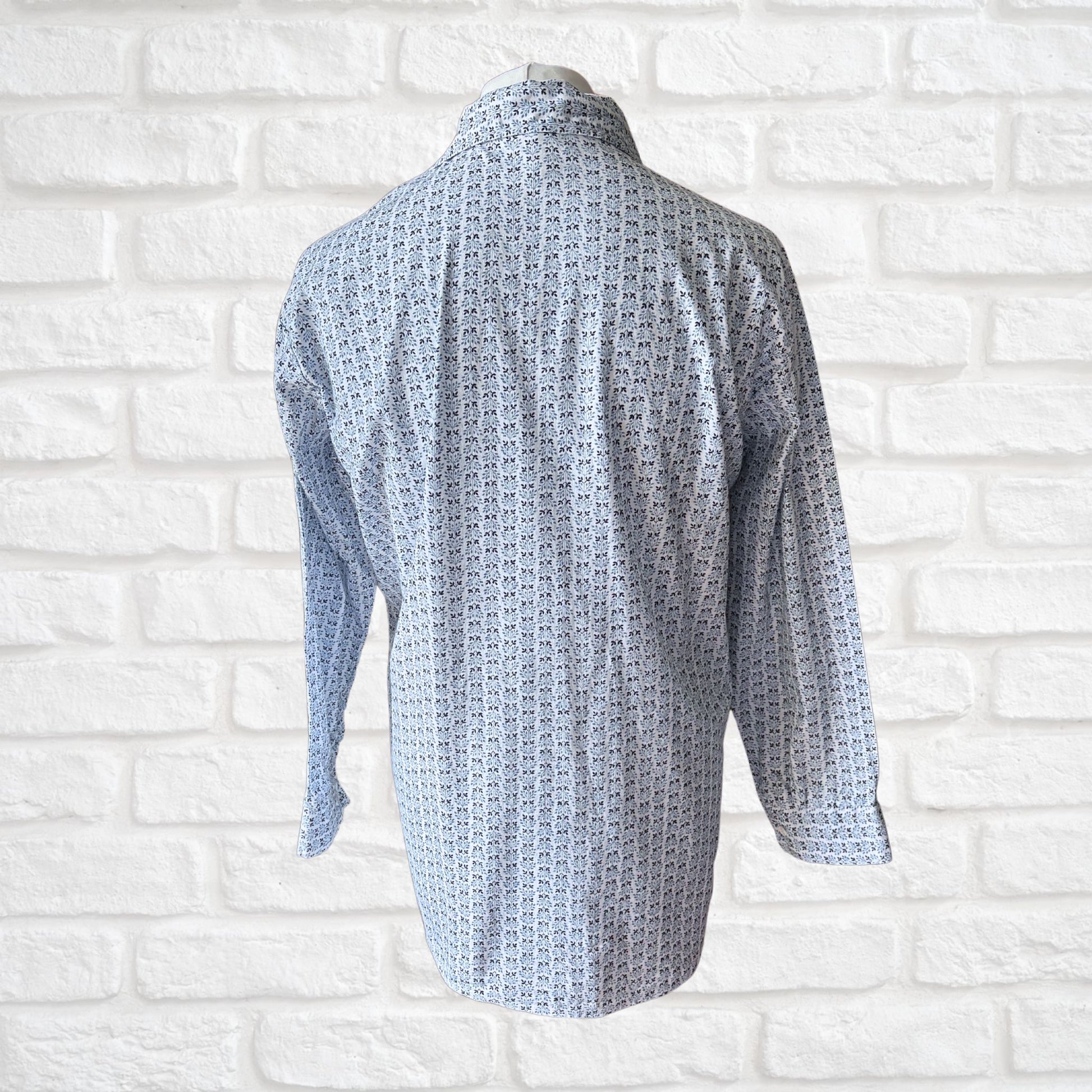 White and Blue Long Sleeved Cotton Vintage Shirt. Approx UK size L - XL( men) 16-18 (women)